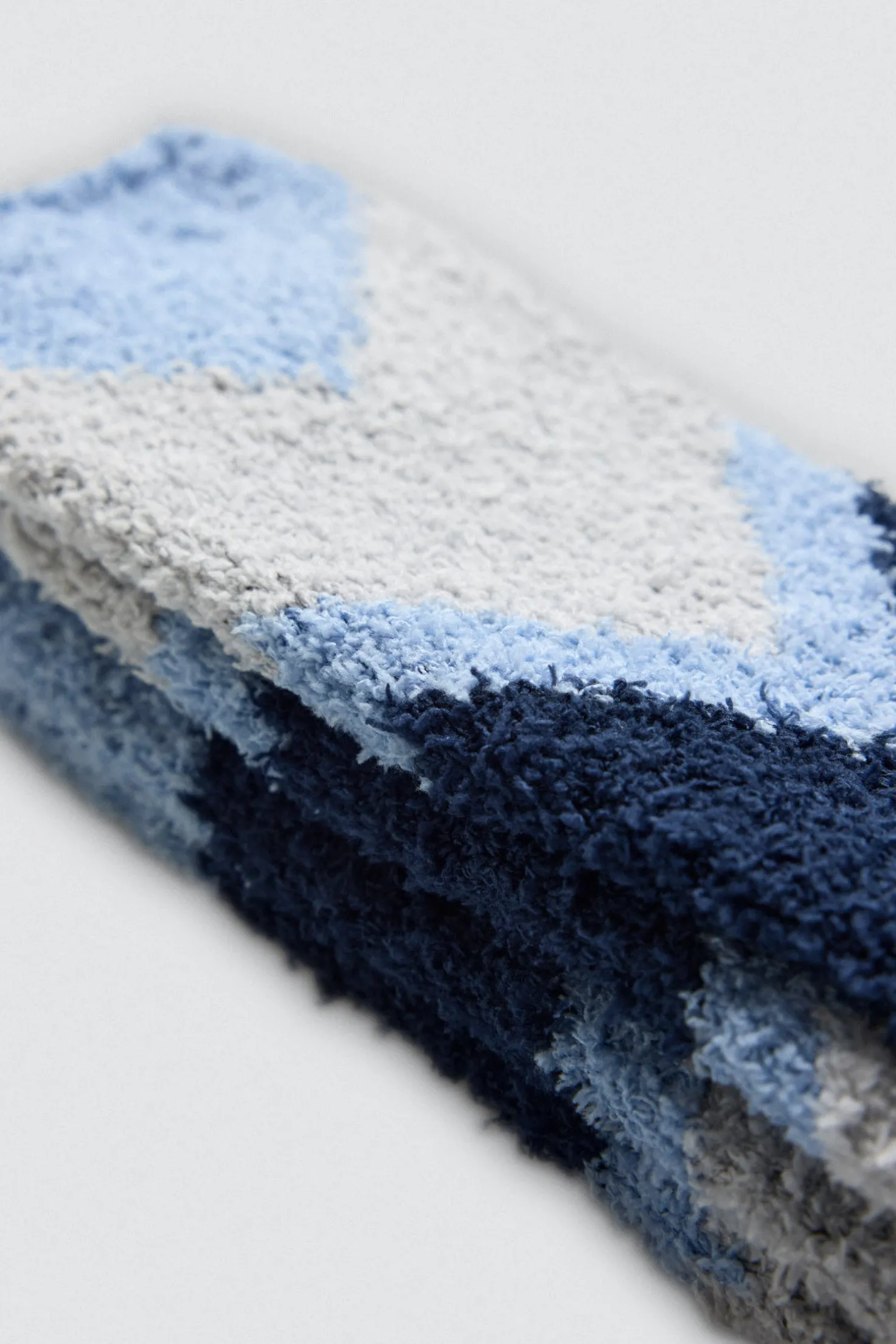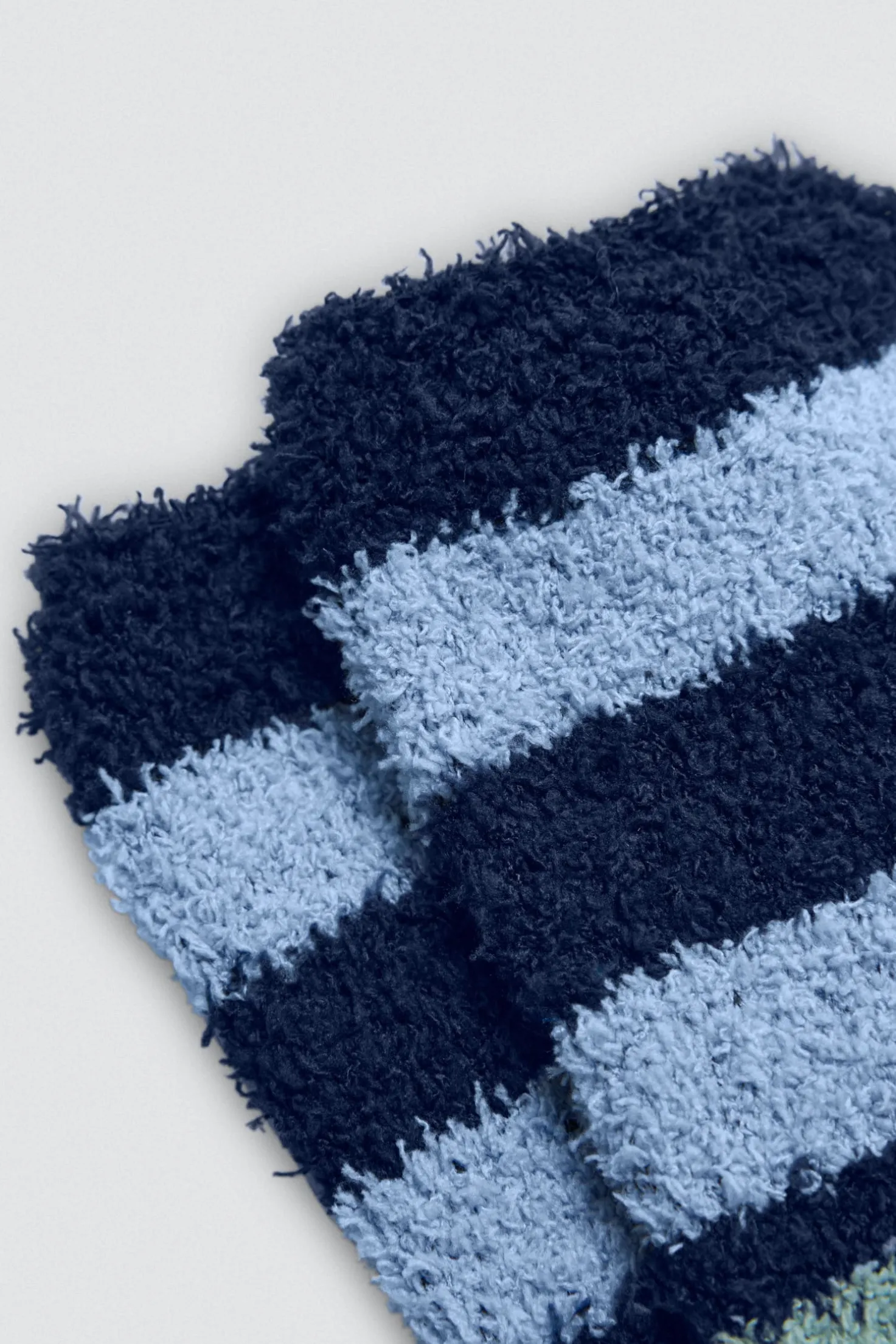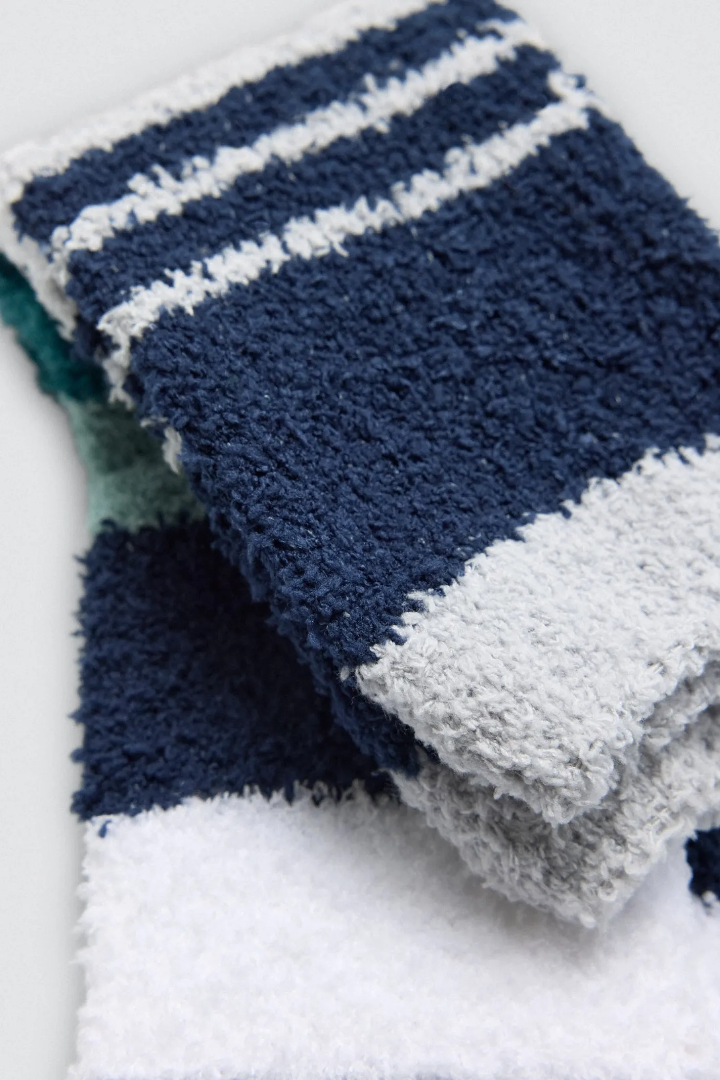 Pack de 3 calcetines altos de franela con puño antipresión y estampado a rayas