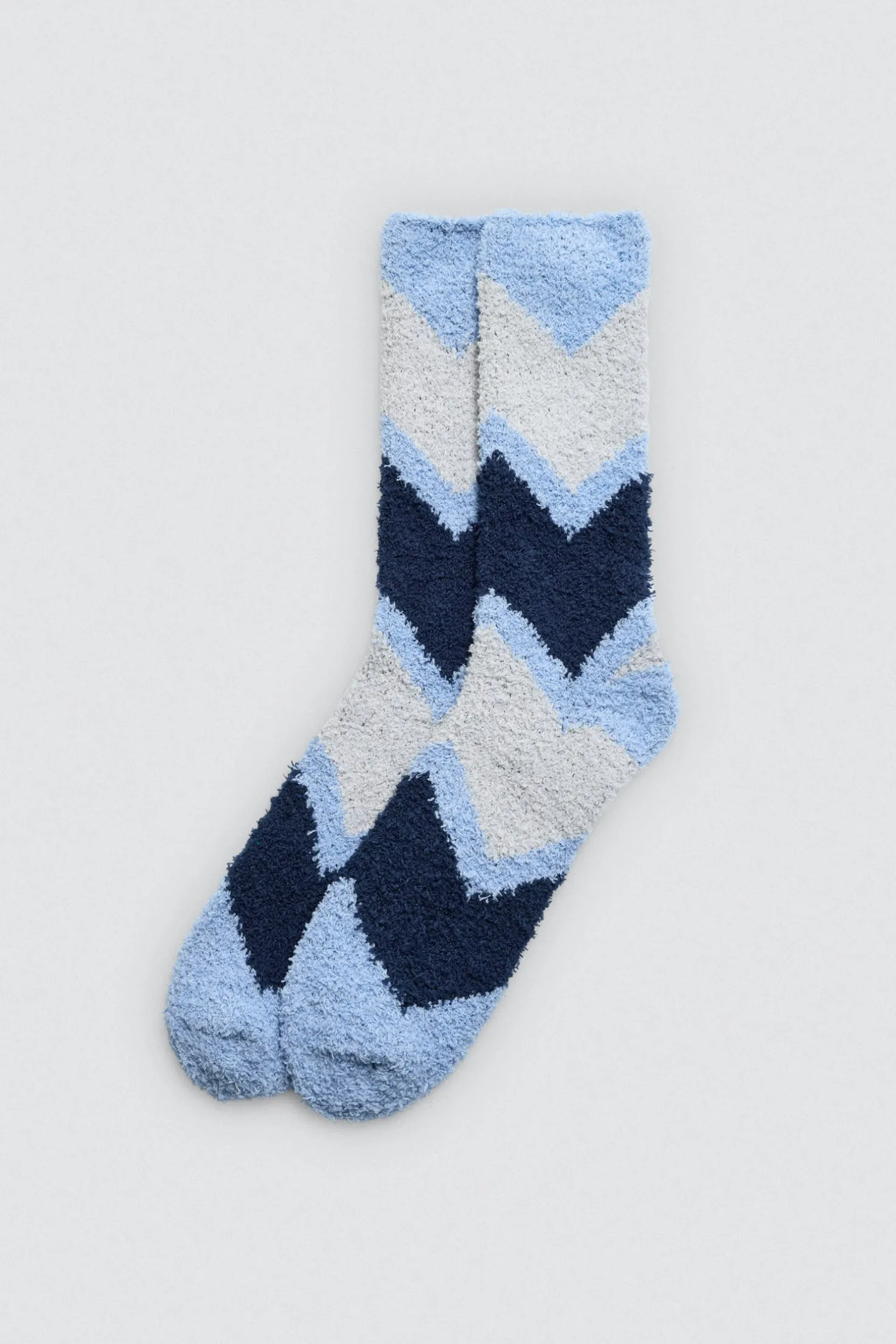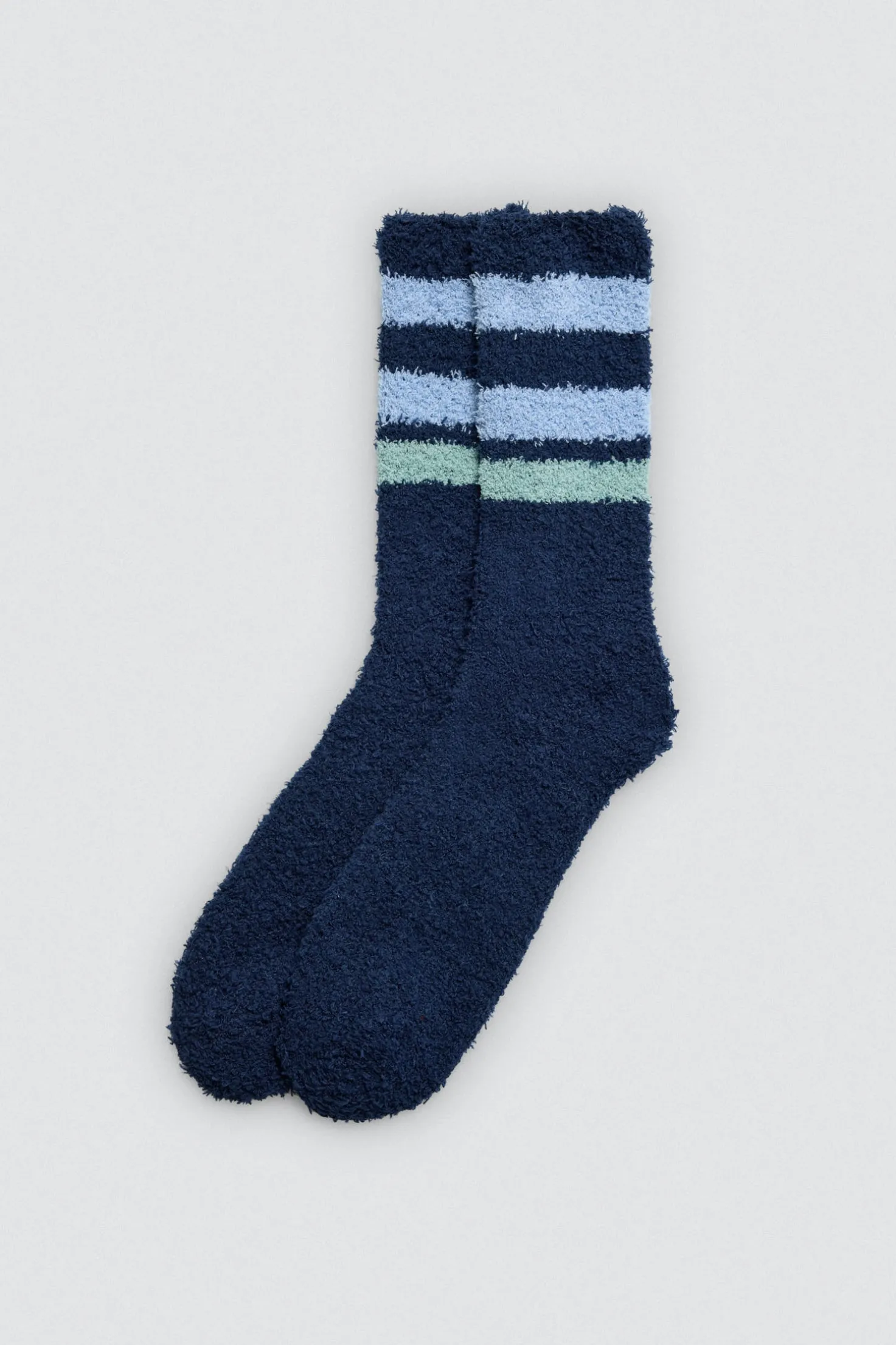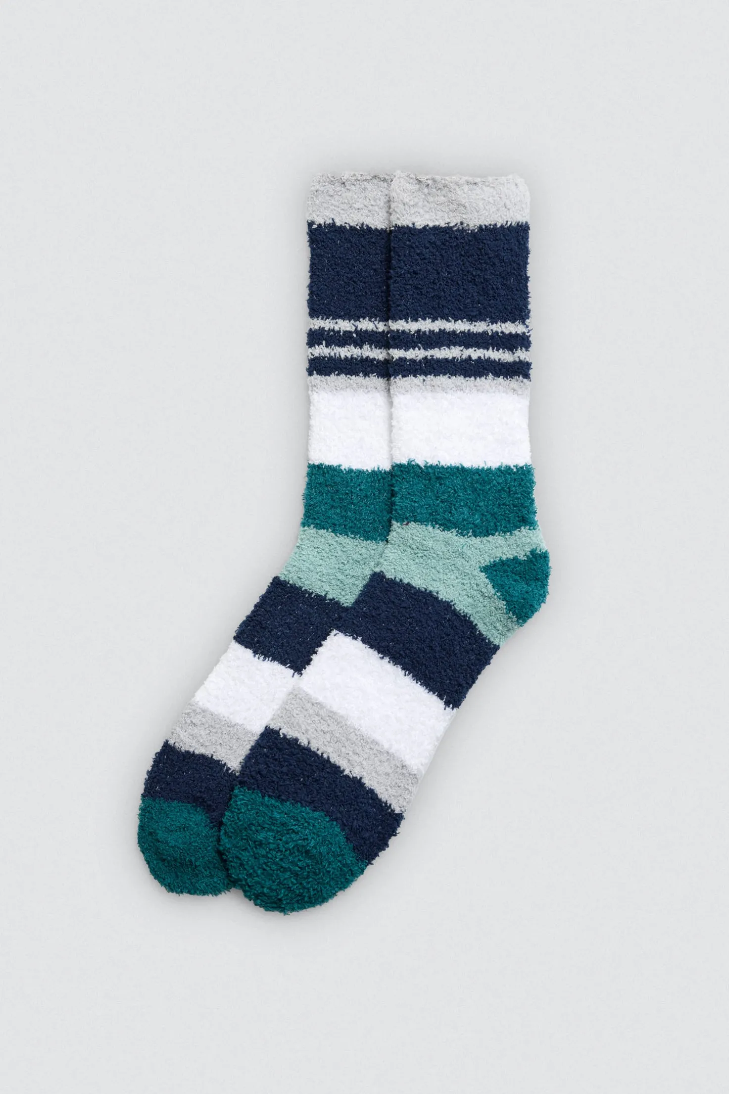 Pack de 3 calcetines altos de franela con puño antipresión y estampado a rayas