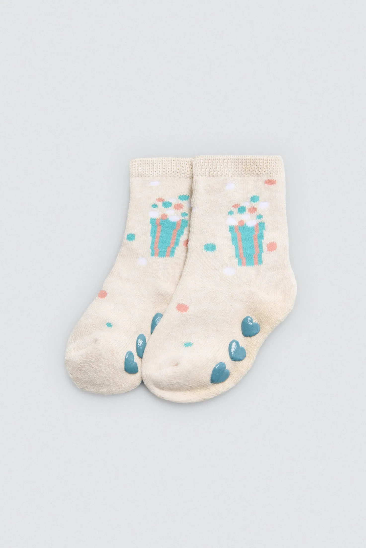 Pack de 4 pares de calcetines térmicos, antideslizantes y con estampados rosas para bebé niña. Puño antipresión.