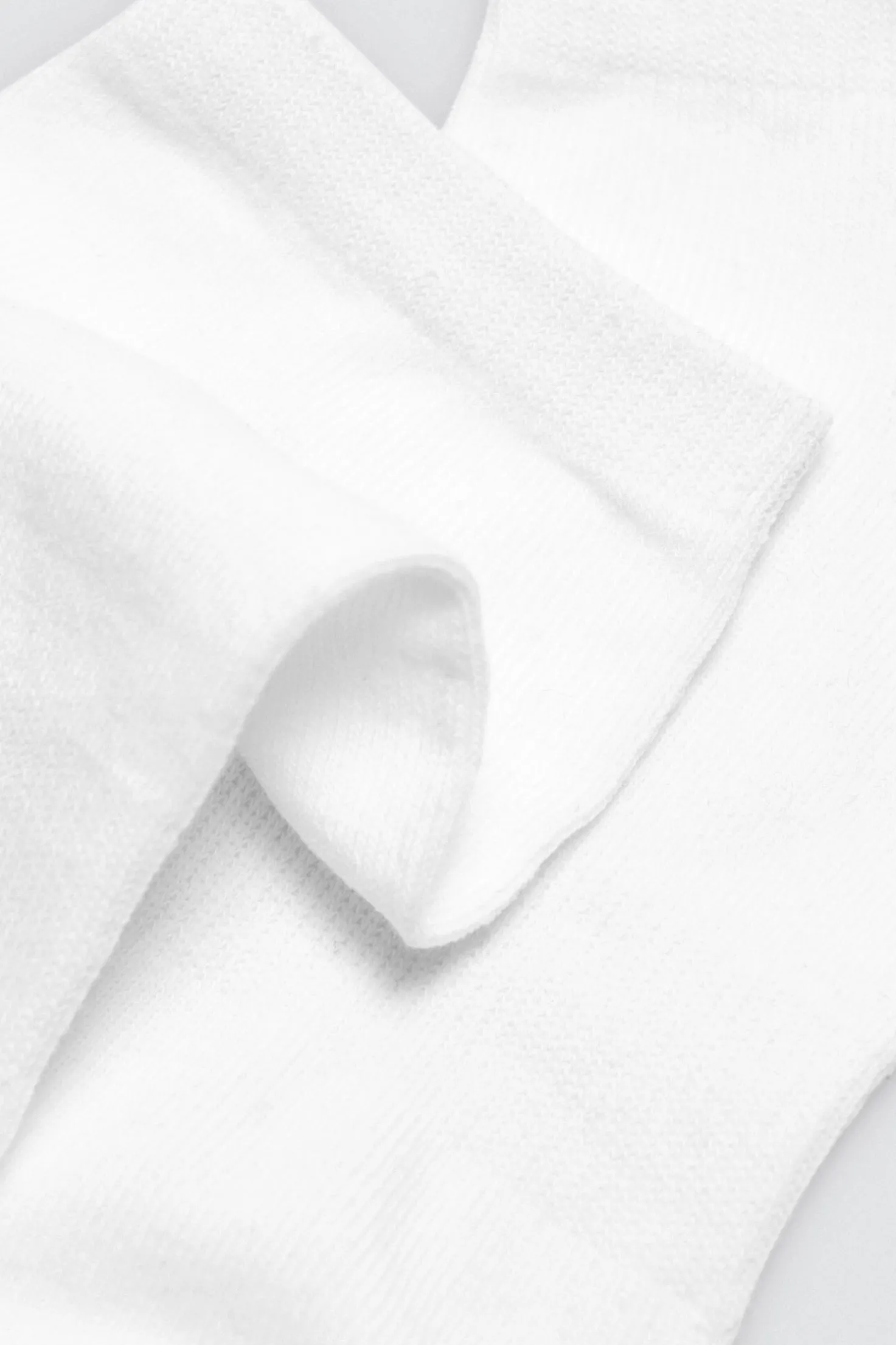 Pack de 5 pares de calcetines unisex, tanto para mujer como para hombre. Calcetines cortos, perfectos para primavera y verano. Color blanco. Puño antipresión.