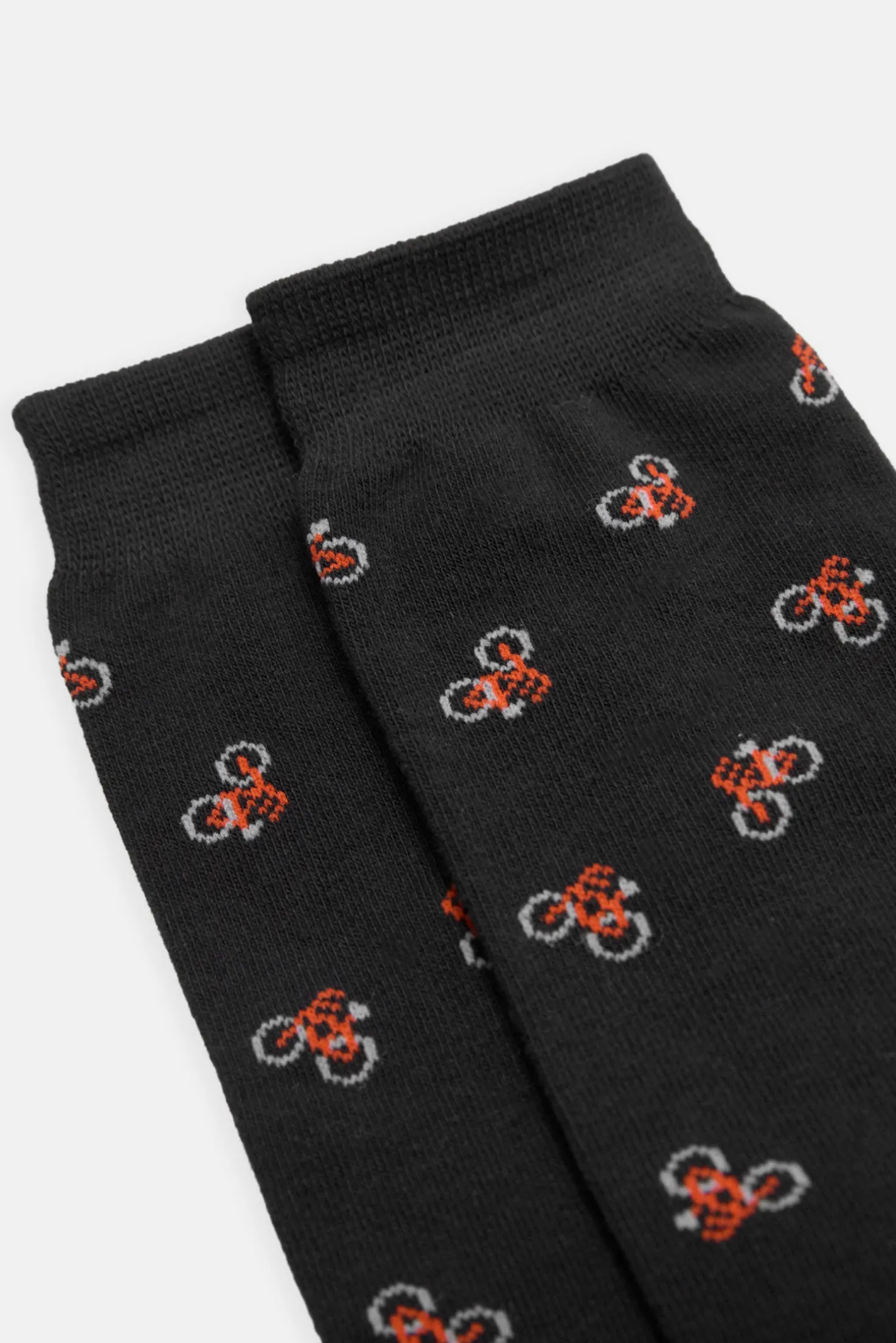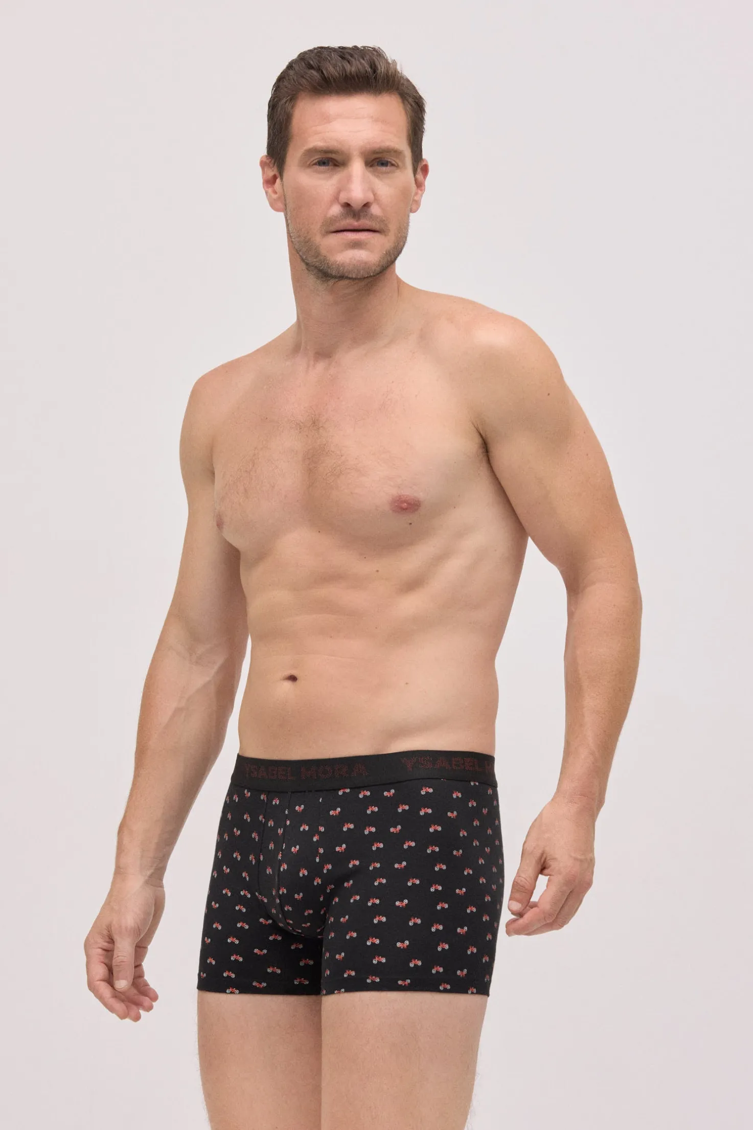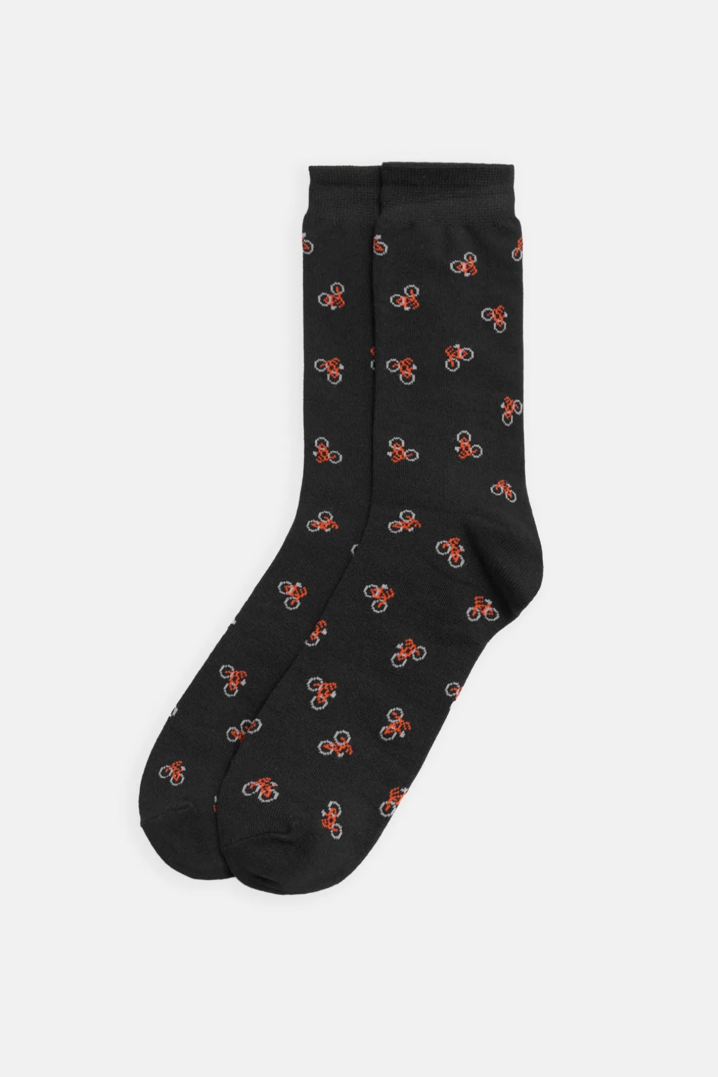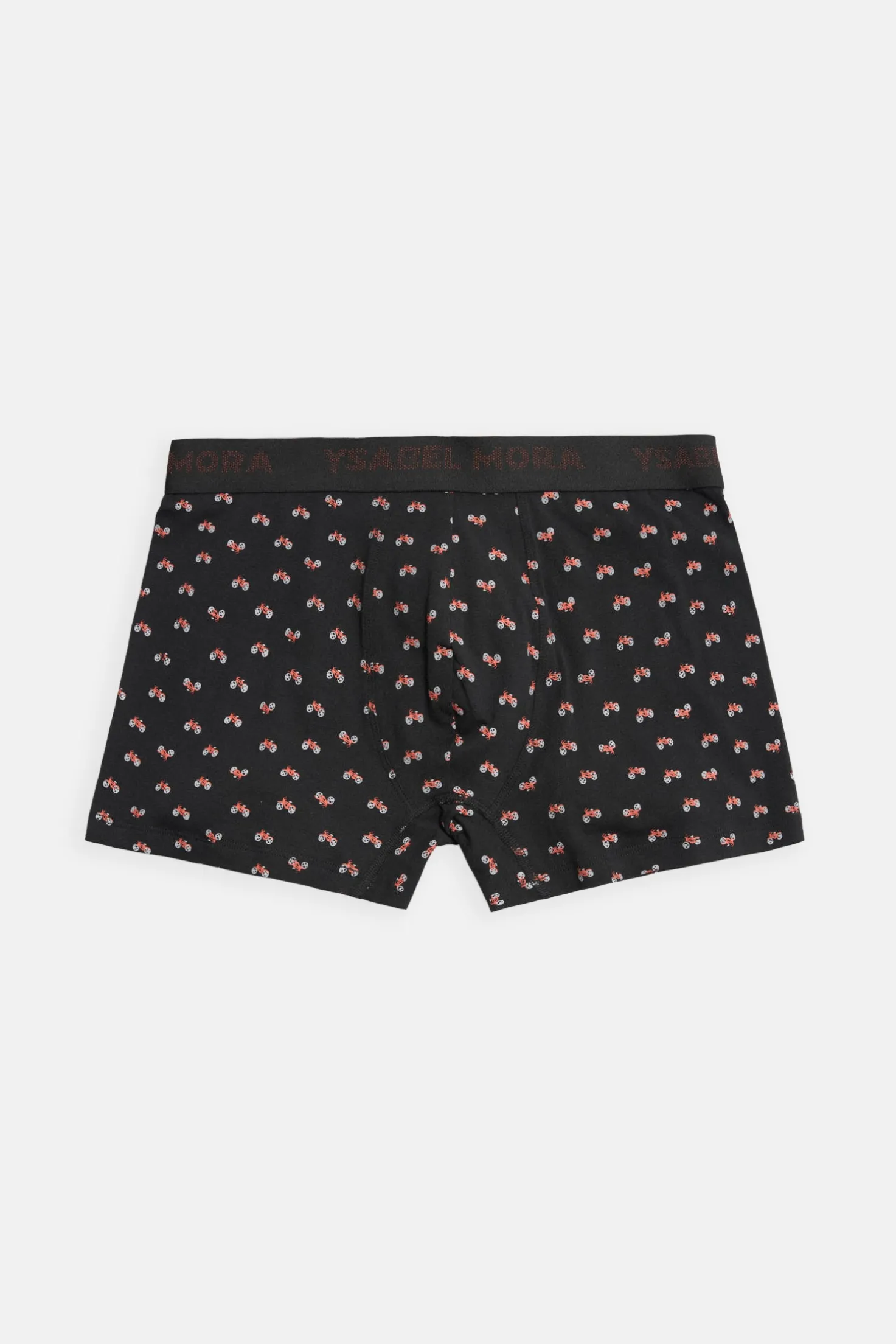 Pack de bóxer y calcetín de Ysabel Mora confeccionados en algodón natural para ofrecer confort y transpirabilidad durante todo el día. Ambos artículos comparten un original estampado de bicicletas sobre fondo oscuro, perfecto para los amantes de los pequeños detalles. Una opción divertida e ideal como pack regalo.