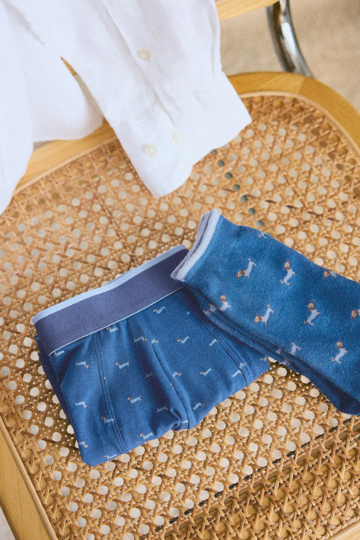 Pack de bóxer y calcetín con estampado de perro salchicha