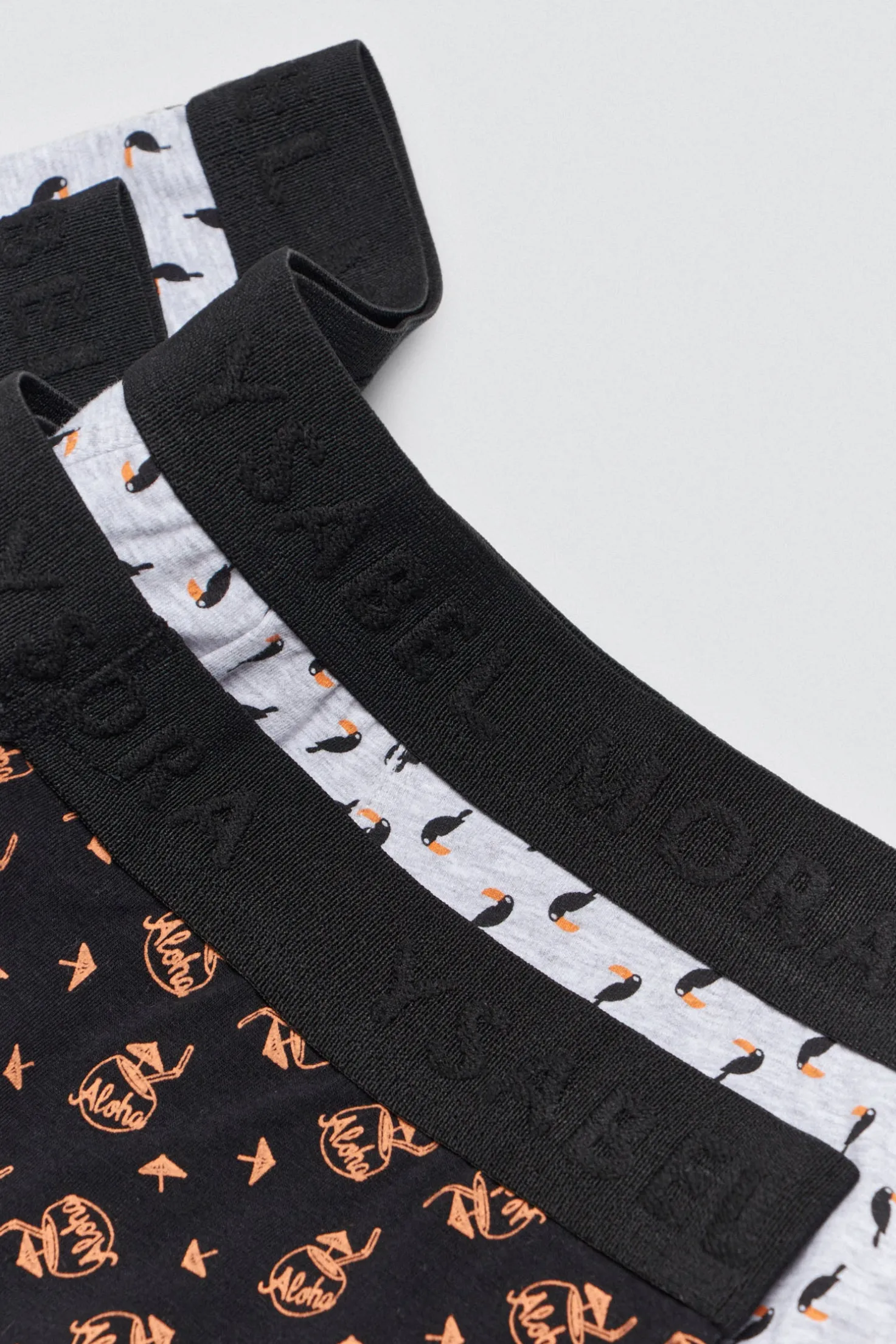 Pack de 2 boxers estampados. Incluye uno de cada color. Confeccionados con algodón natural. Banda elástica en la cintura para asegurar un ajuste adecuado.