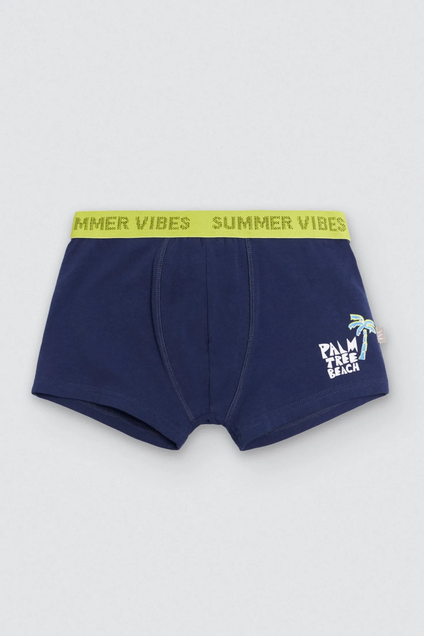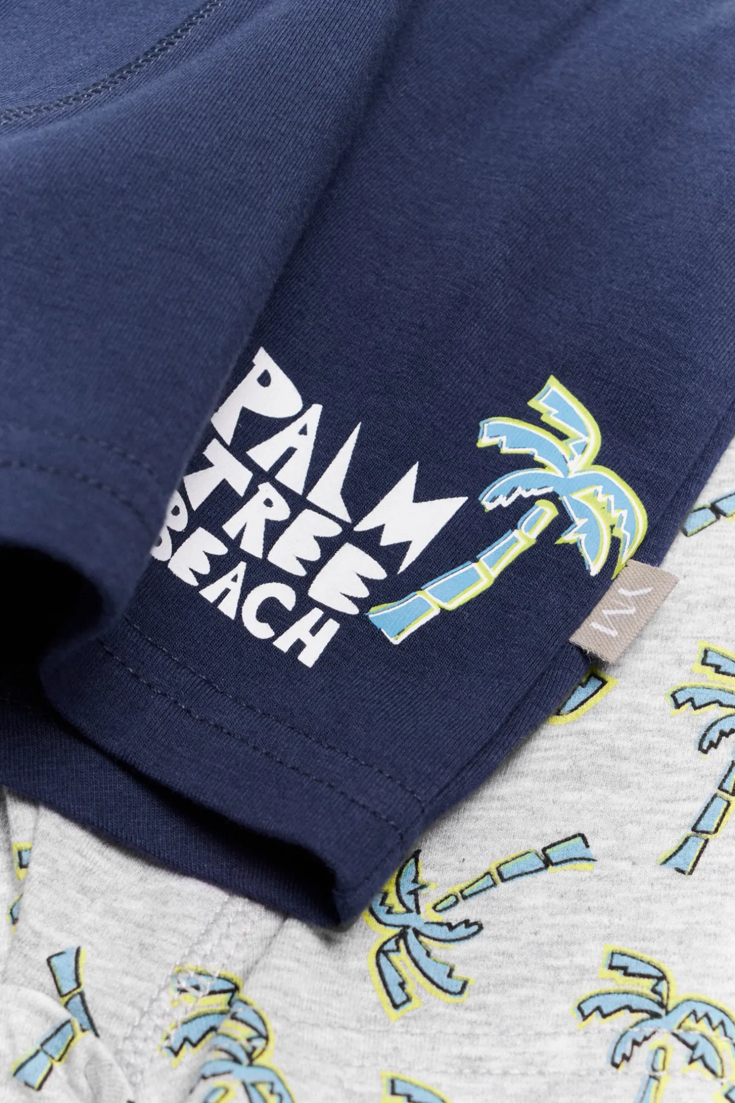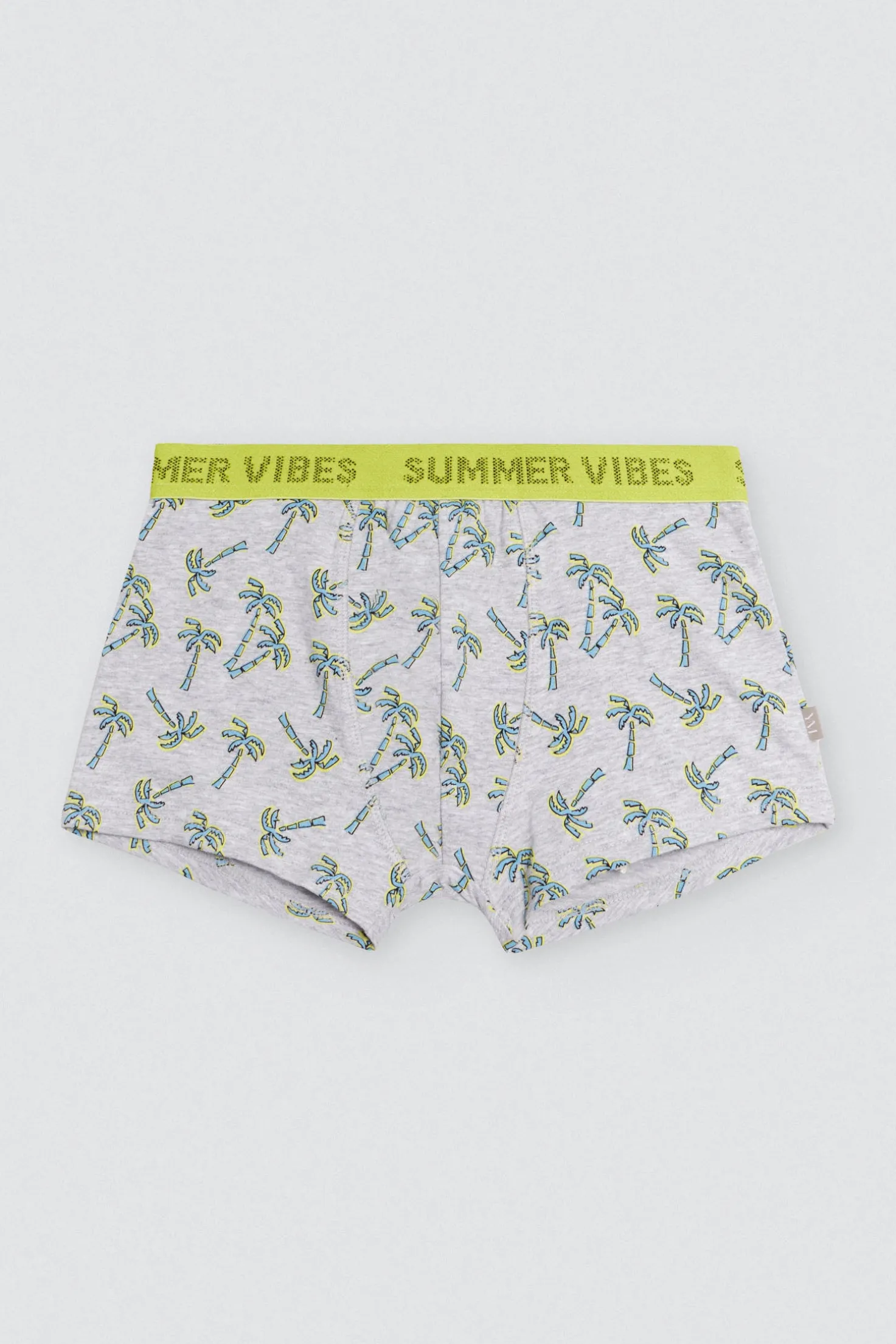 Pack de 2 calzoncillos bóxer para chicos jóvenes con estampado palmeras. Confeccionados en algodón natural, ofreciendo suavidad y comodidad. Tienen un ajuste ceñido para que el niño se sienta cómodo y seguro mientras los usa.