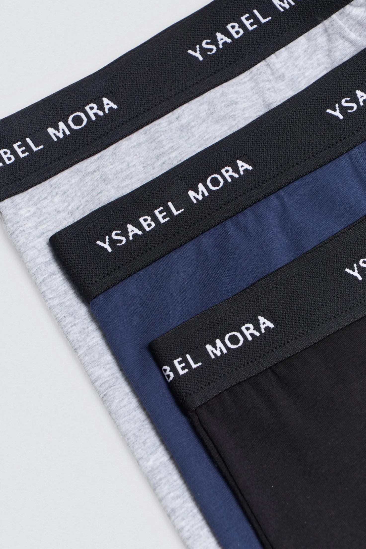 Pack de 3 calzoncillos bóxer básicos de hombre para el día a día. Confeccionados con algodón, que aporta suavidad y transpirabilidad a la prenda. Incluye un bóxer de cada color: gris, marino y negro.