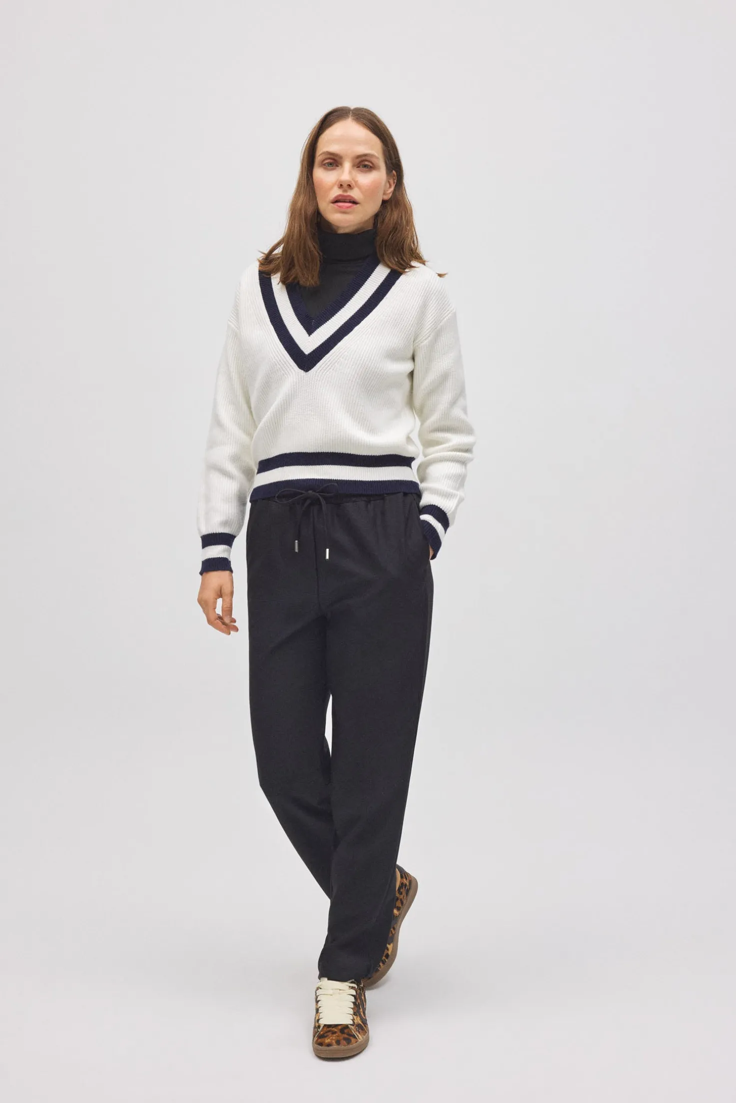 Pantalón recto con cintura ajustable mediante cordón. Diseño relajado, perfecto para looks casual o de oficina con un aire desenfadado.