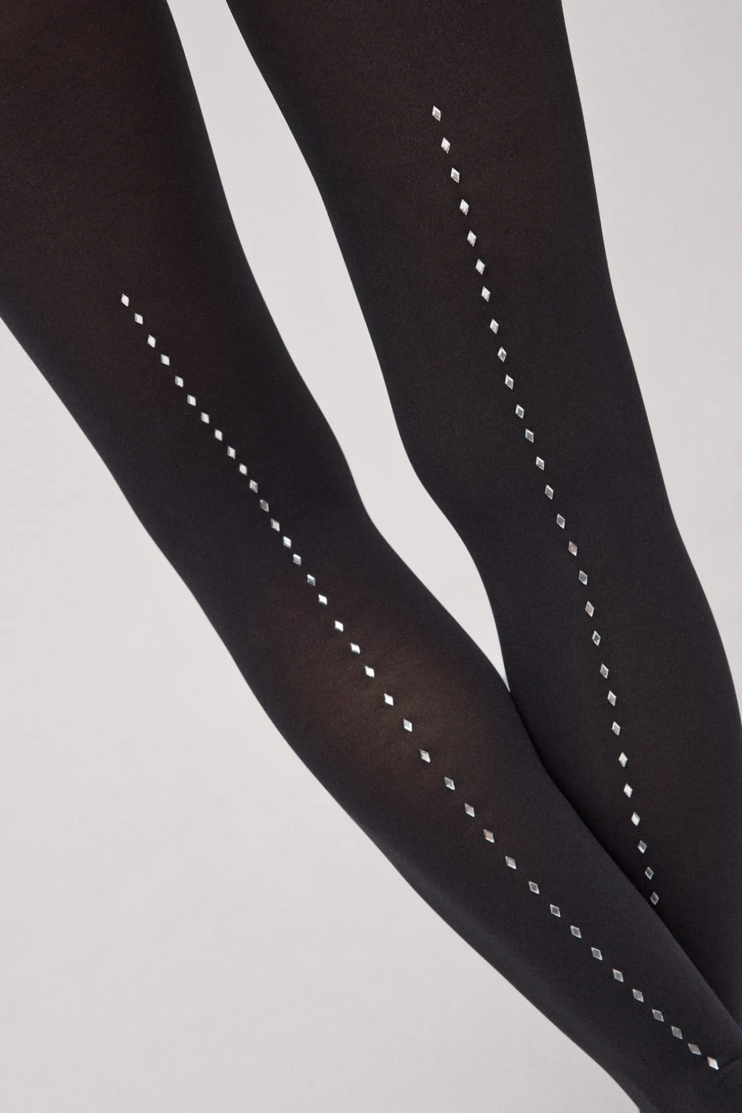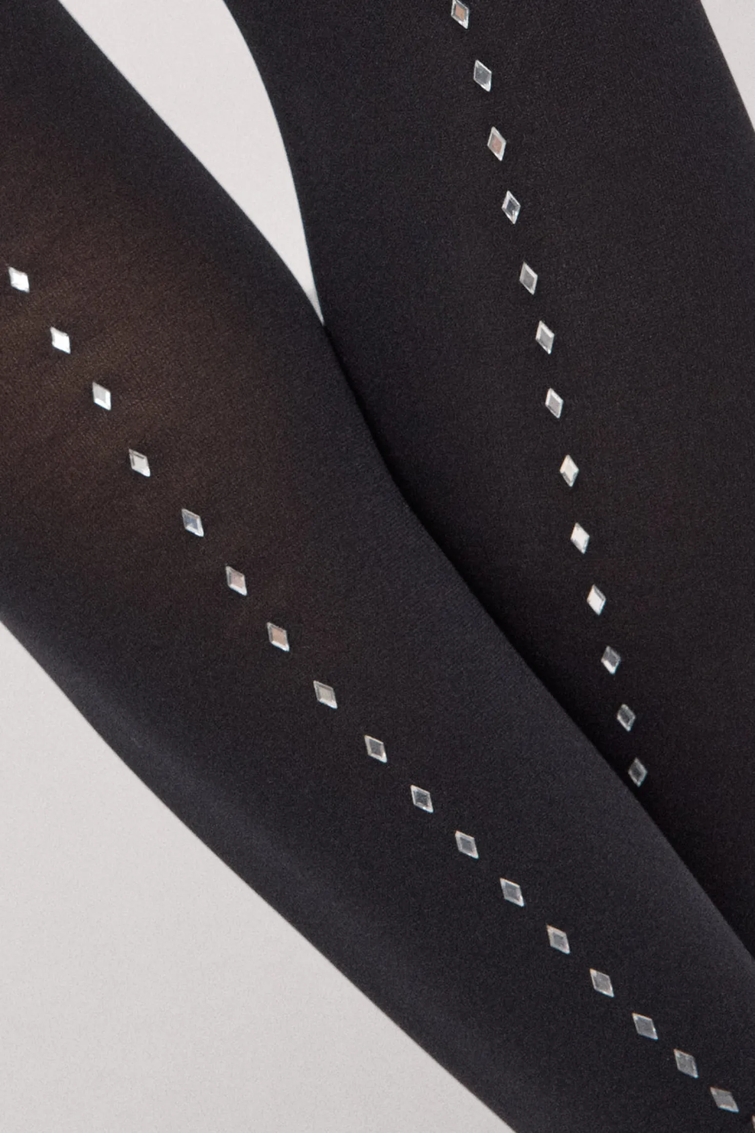 Panty de 70 deniers de color negro con detalle lineal trasero de brillos en vertical tipo diamante.