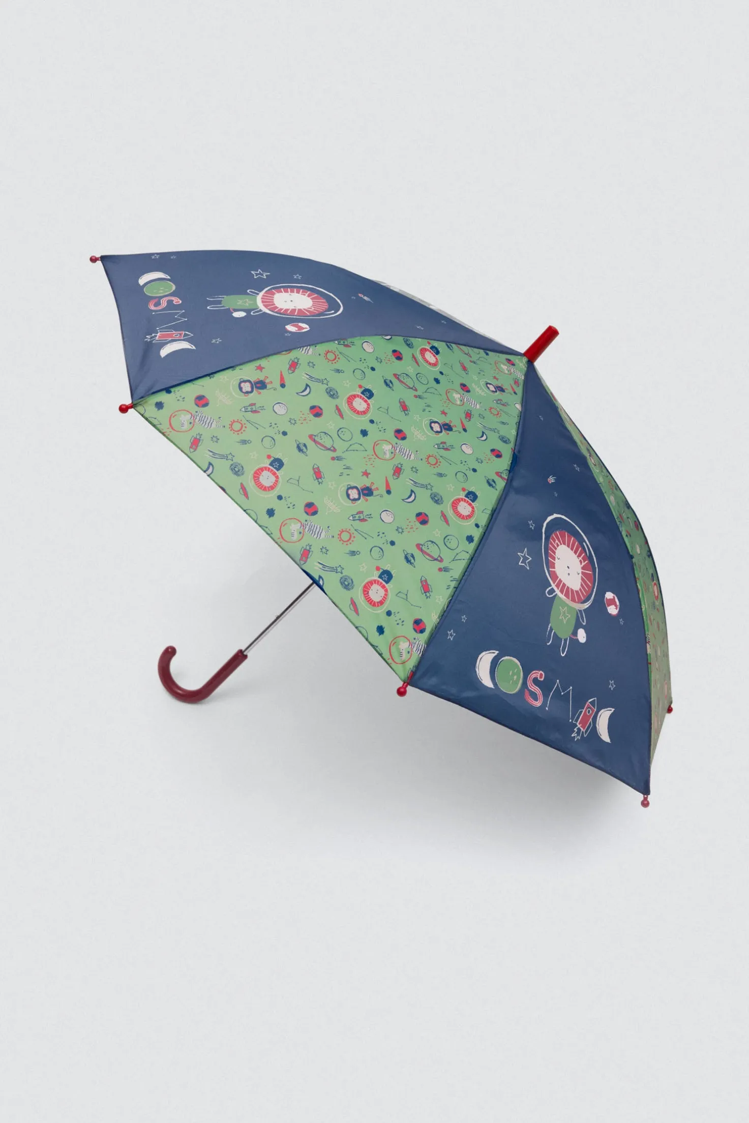 Paraguas infantil con estampado galáctico, hecho con fibra de vidrio.
