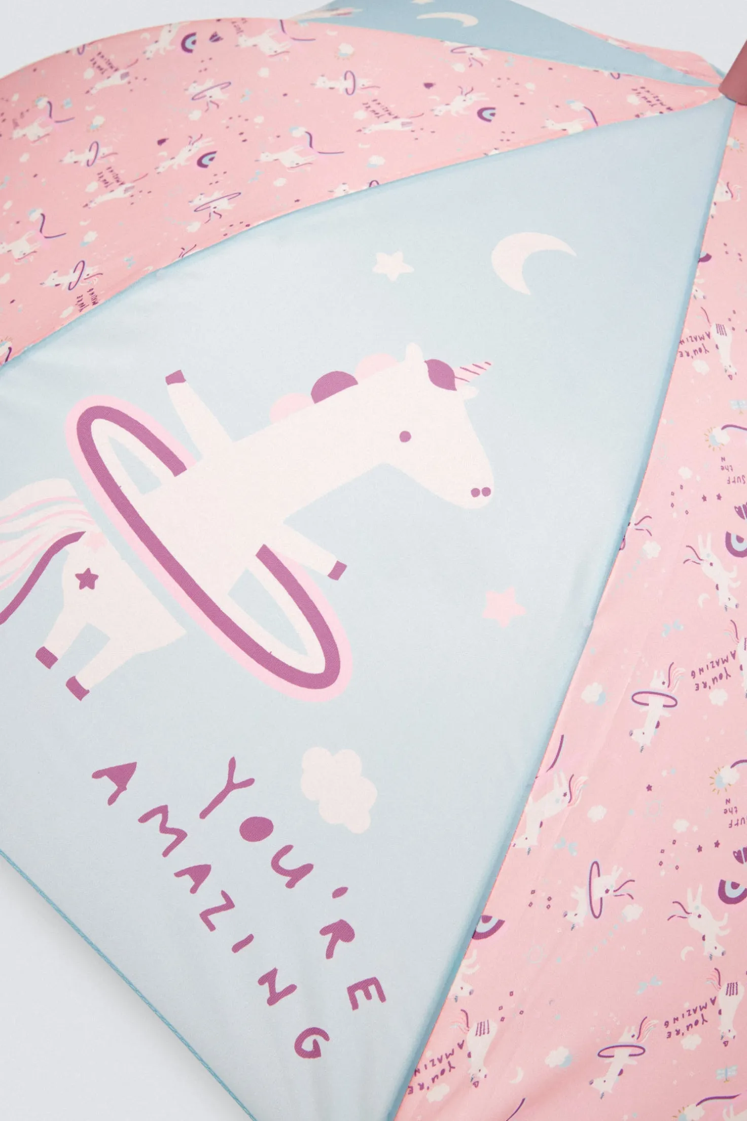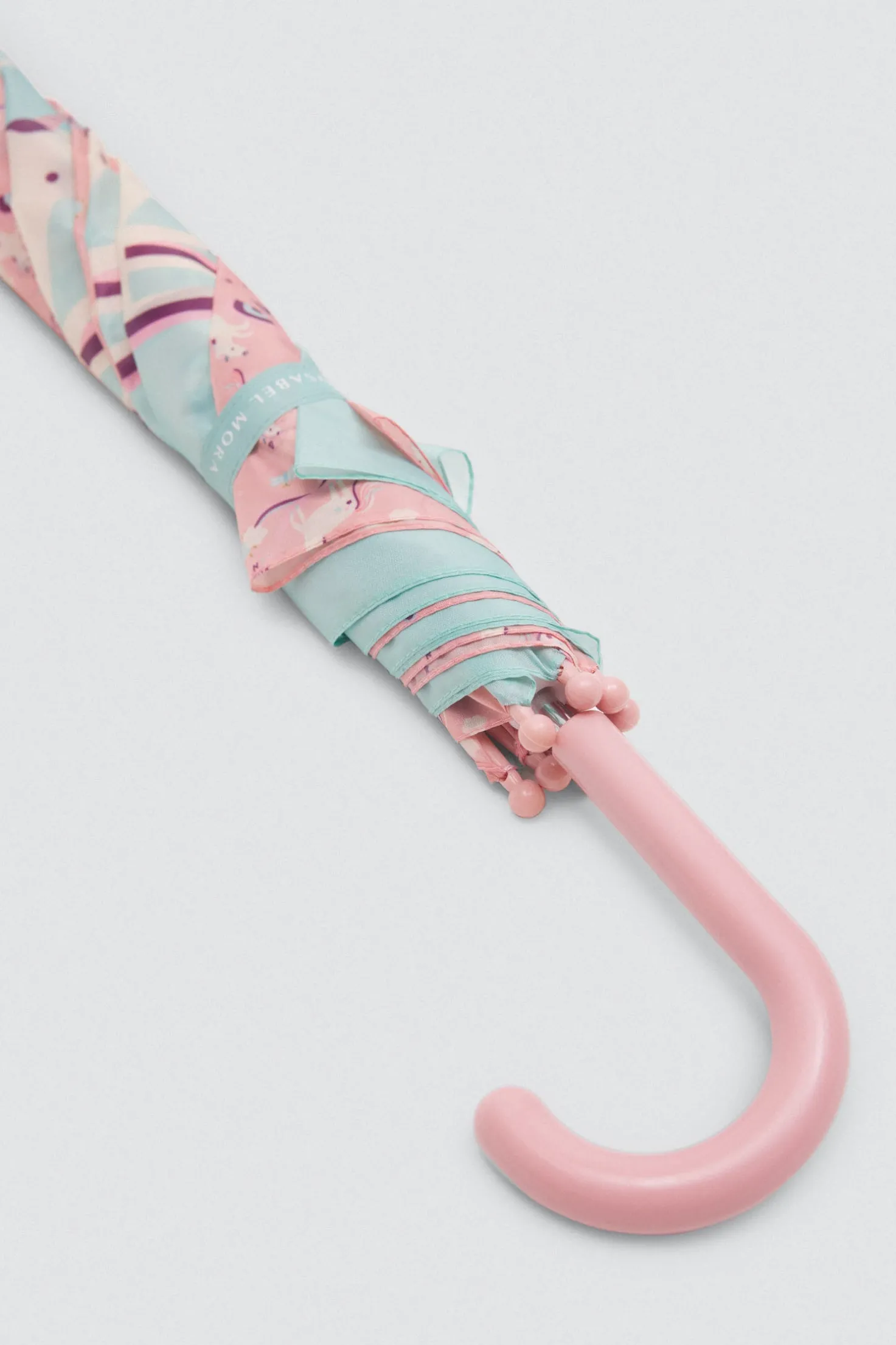 Paraguas infantil con estampado de unicornios, hecho con fibra de vidrio.
