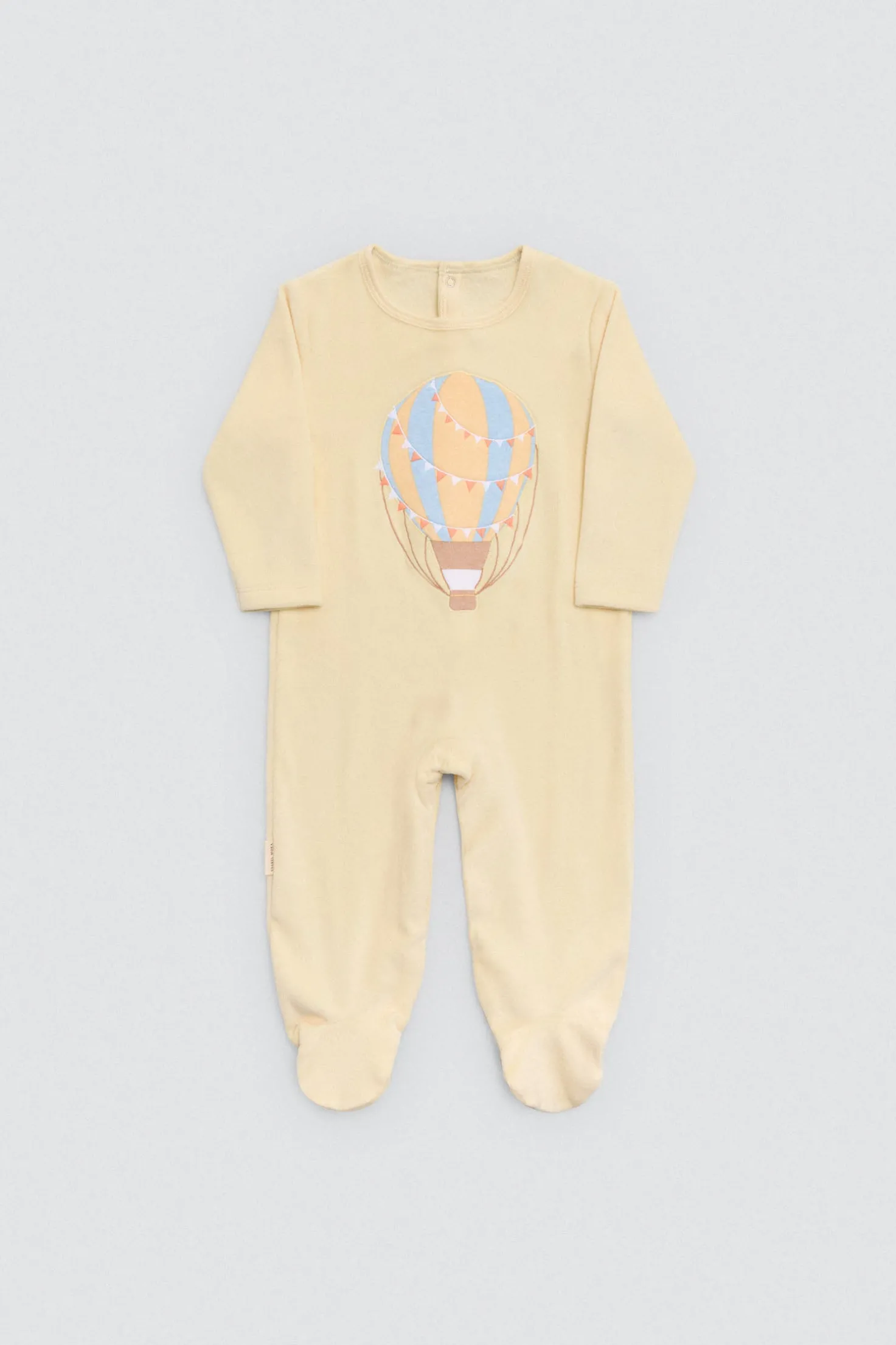 Pelele para bebé de manga larga con estampado de globo en tonos suaves. Con cierre de botones trasero. Interior afelpado para mayor confort térmico.