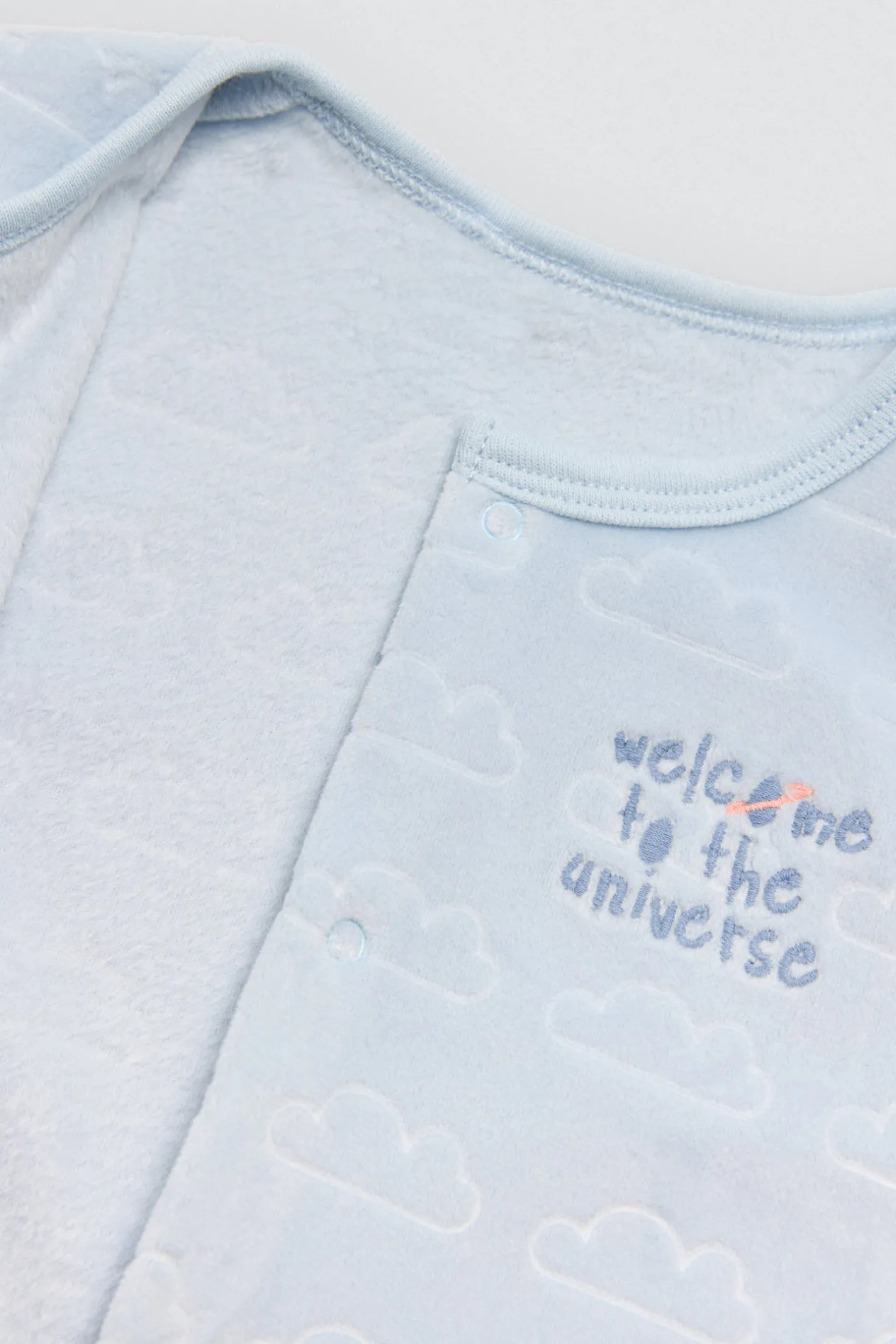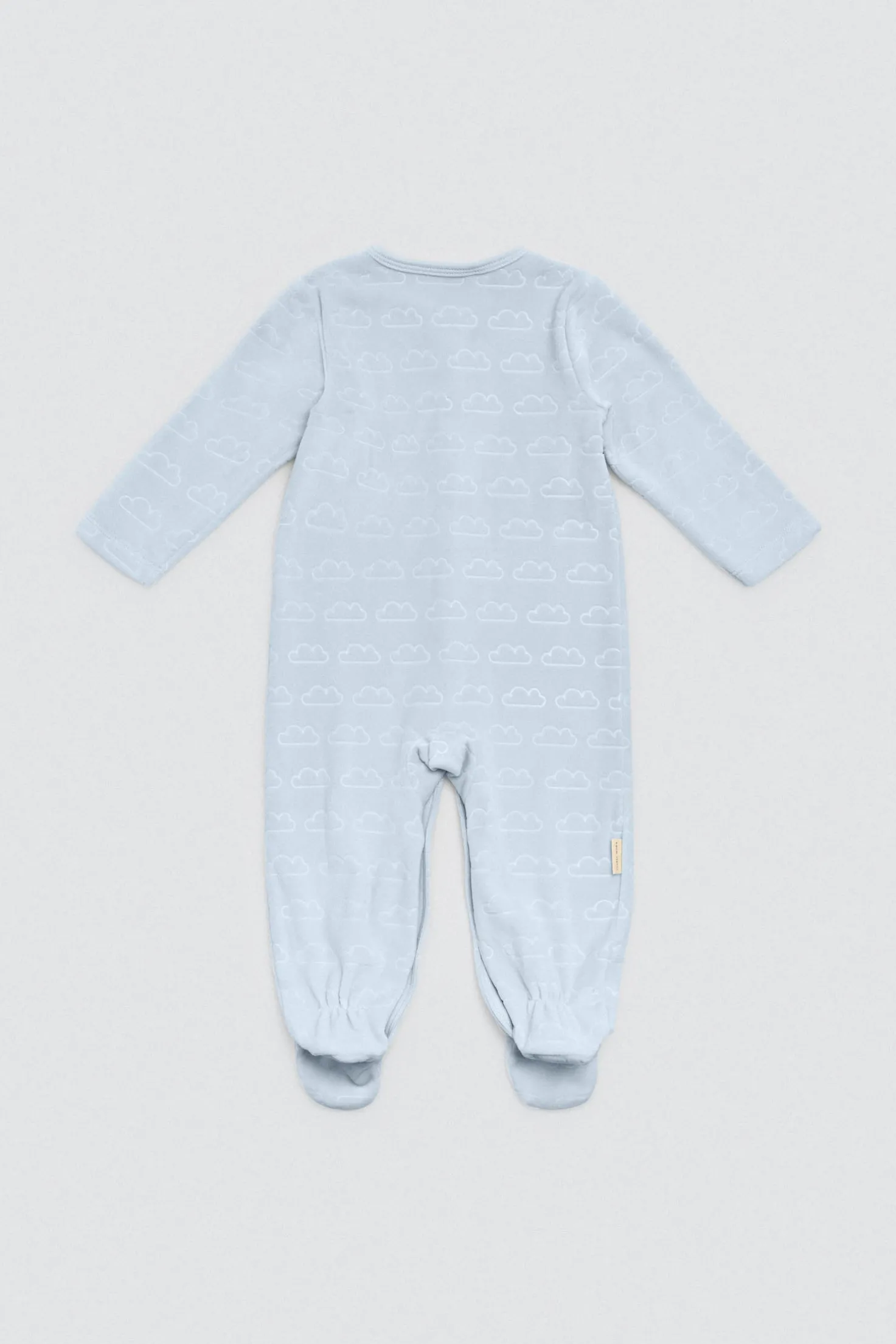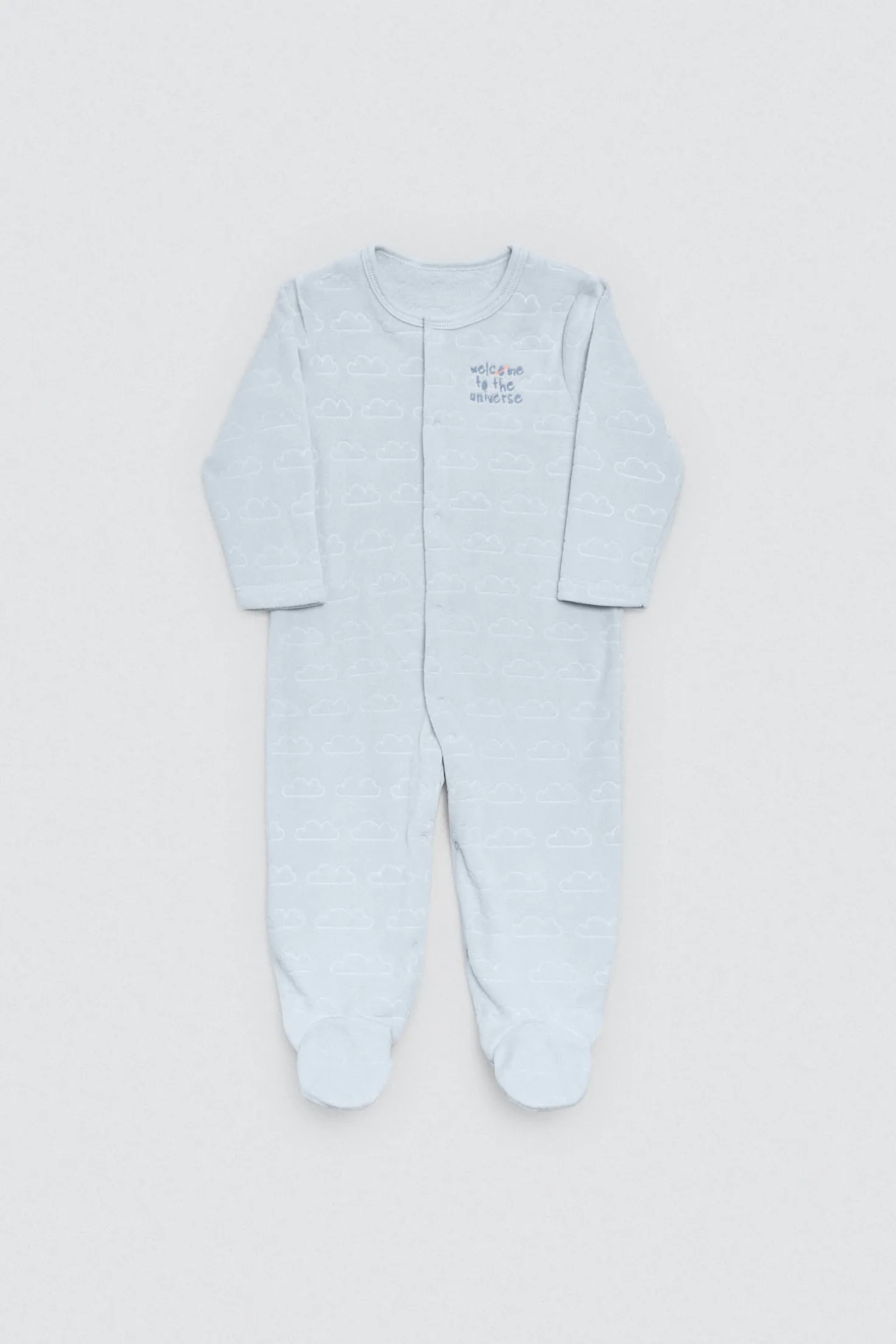 Pelele de manga larga para bebé con interior afelpado y pies cerrados. Diseño con cierre de cremallera para facilitar el cambio. Estampado de planetas y estrellas.