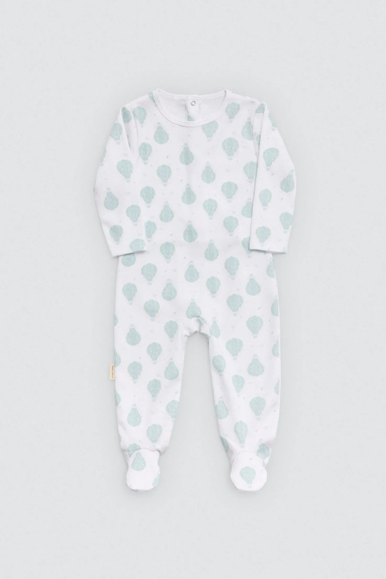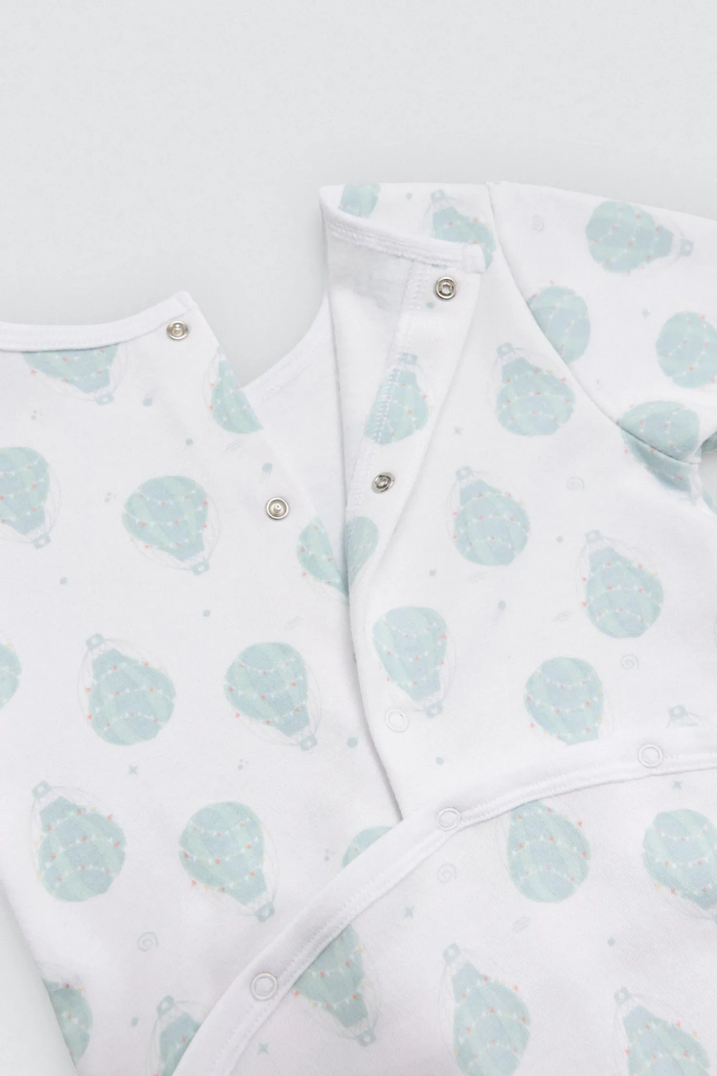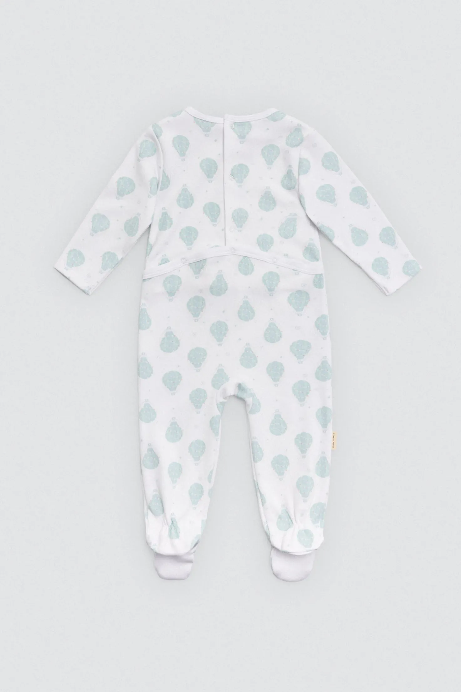 Pelele de manga larga para bebé con interior afelpado. Estampado de globos sobre fondo blanco. Ideal para bebés activos que empiezan a gatear.