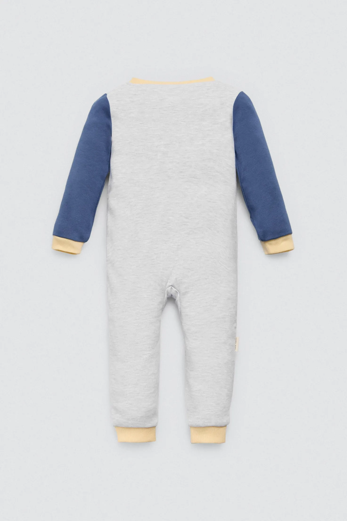 Pelele de manga larga con interior afelpado, ideal para mantener al bebé abrigado y cómodo. Diseño con simpático pingüino bordado y mangas en contraste. Confeccionado en algodón natural para un tacto suave y agradable. Cierre con cremallera desde el cuello hasta el pie. Perfecto para dormir, jugar o pasar un día en casa.