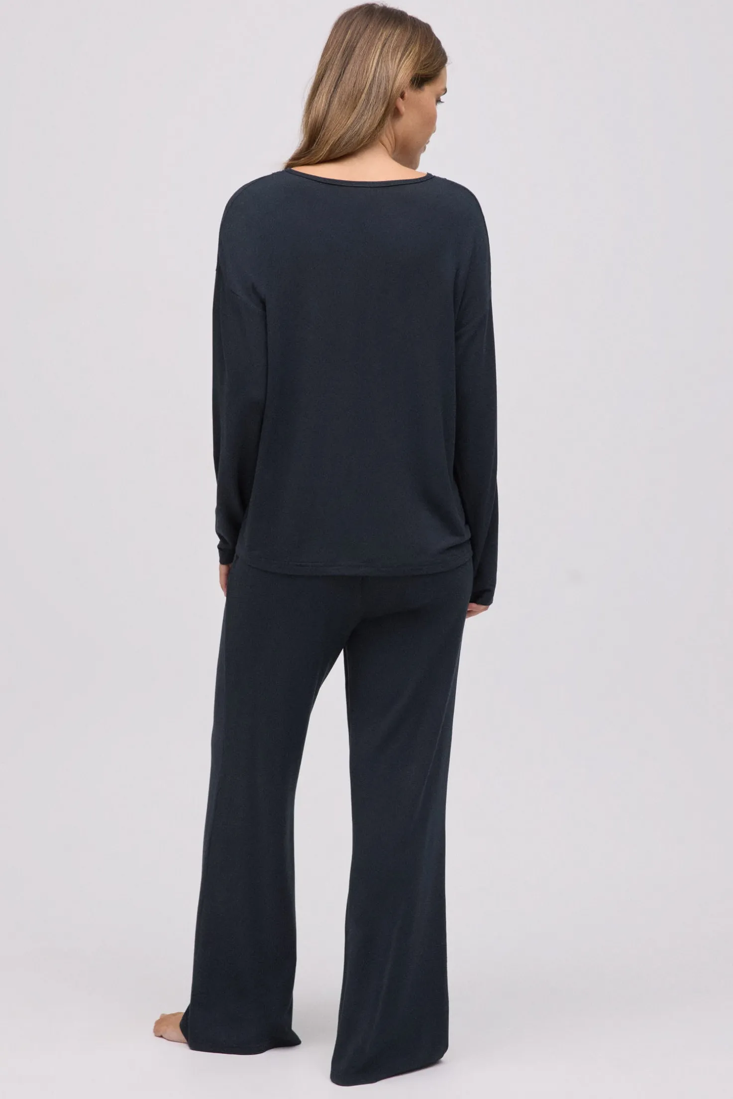 Fabricado en modal de alta calidad, un tejido reconocido por su suavidad sedosa, transpirabilidad y resistencia. Su tono noche aporta serenidad y estilo atemporal, perfecto para disfrutar tanto de noches tranquilas como de momentos de relax en casa.