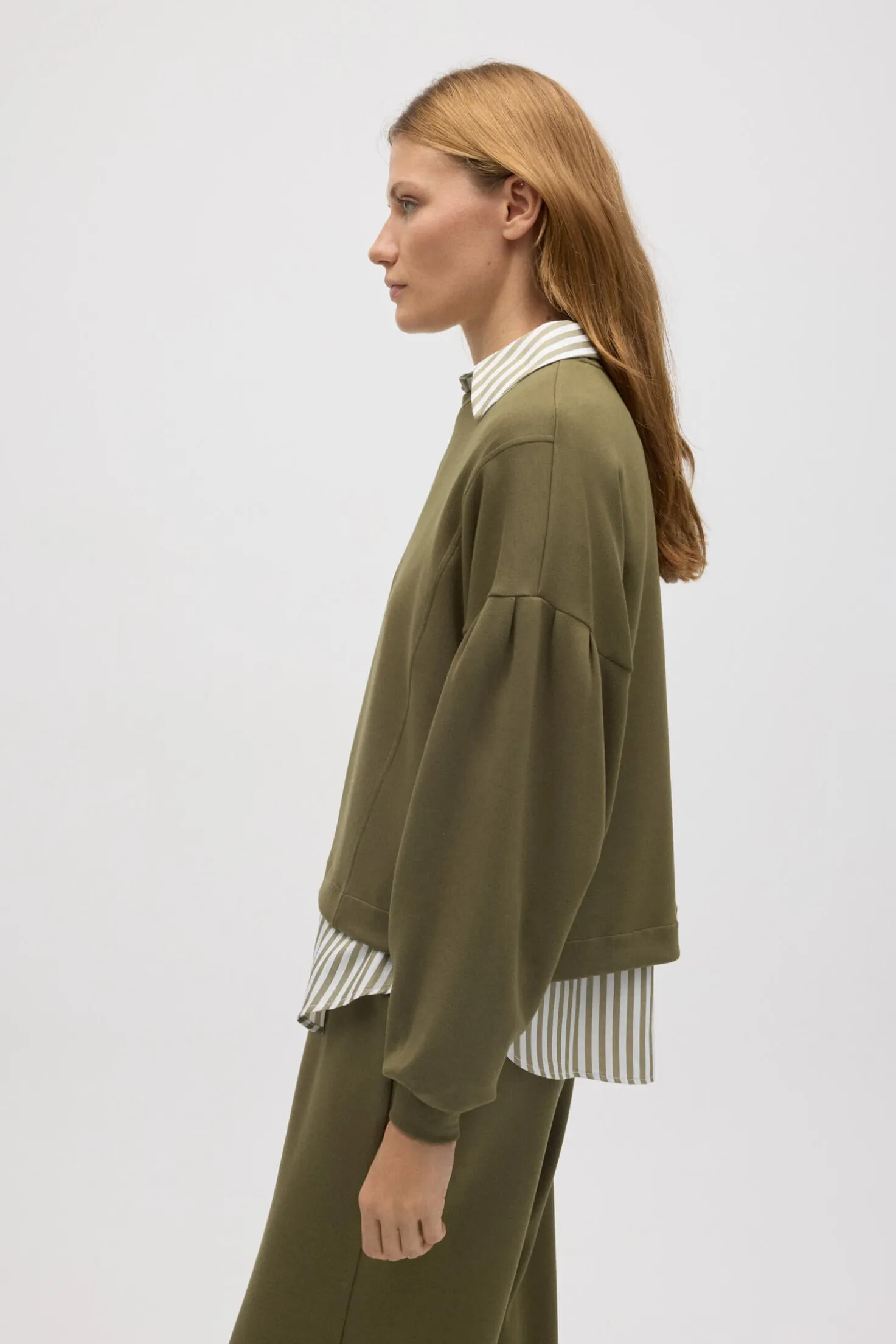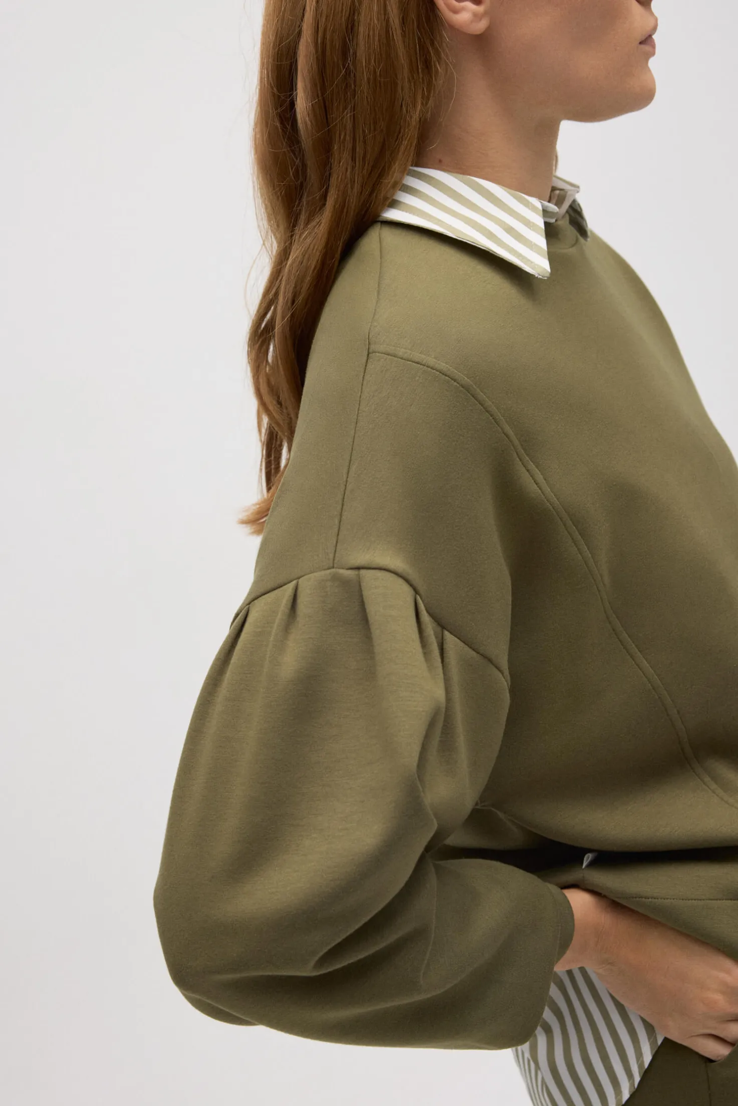 Sudadera mangas abullonadas fluida. Características