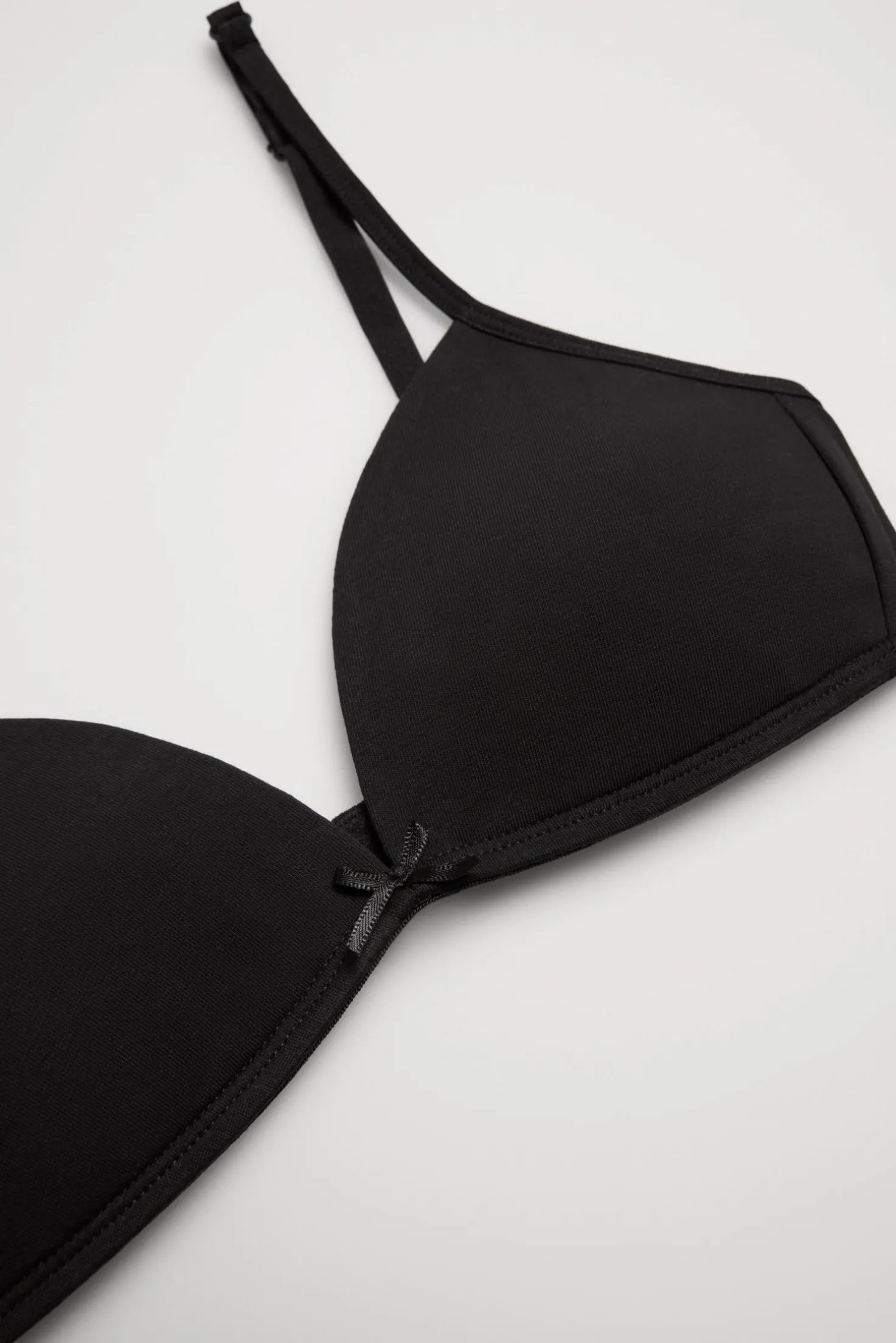 Confeccionado con un suave y transpirable algodón, este sujetador de copa pequeña en forma de triángulo te brinda una sensación de frescura y suavidad en tu piel durante todo el día. Su relleno ligero realza sutilmente tus formas naturales, proporcionándote un look natural y favorecedor.