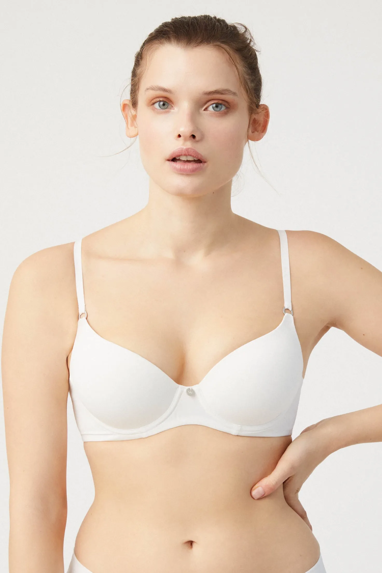 Nuestro sujetador de aro con relleno combina comodidad y estilo en cada detalle, esta prenda de la colección Essentials es la elección perfecta para realzar tu figura y brindarte un ajuste perfecto. Con su diseño cuidadosamente confeccionado y detalles innovadores, este sujetador te proporcionará el soporte necesario sin comprometer tu estilo.