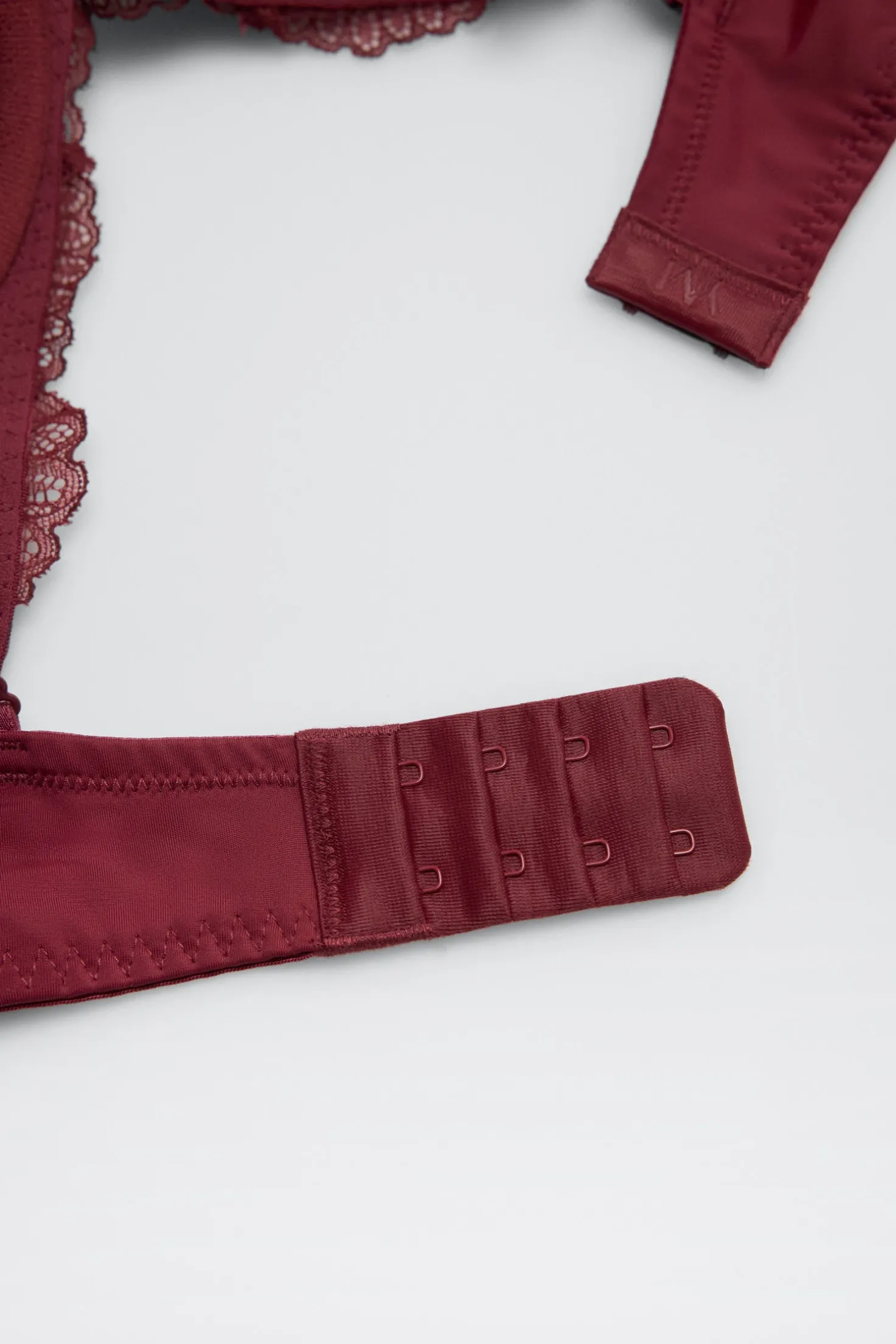 Sujetador con aro y relleno color vino con detalles de encaje