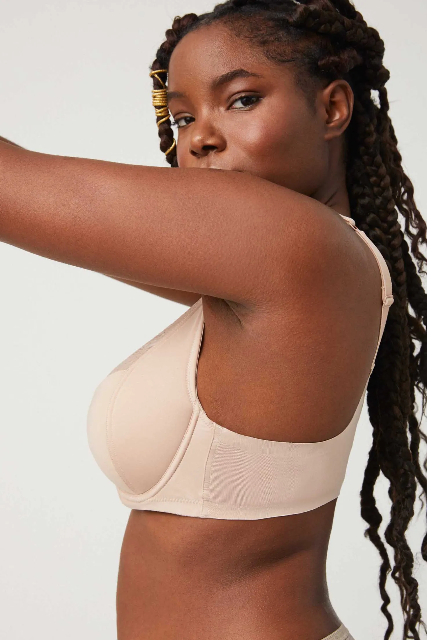 Colección Special You. Técnicamente diseñado para la máxima sujeción y estabilidad sin presión: tirantes anchos, estructuras con espuma que acompañan detalles de encaje en la copa, espalda anatómica para mayor estabilidad y cierre forrado con hasta 4 posiciones. Sus costuras invisibles laterales permiten que no marque la ropa. Elige una braguita de la colección Special You y completa tu set lencero. Color nude.