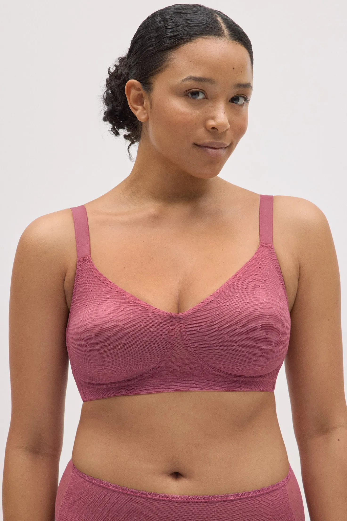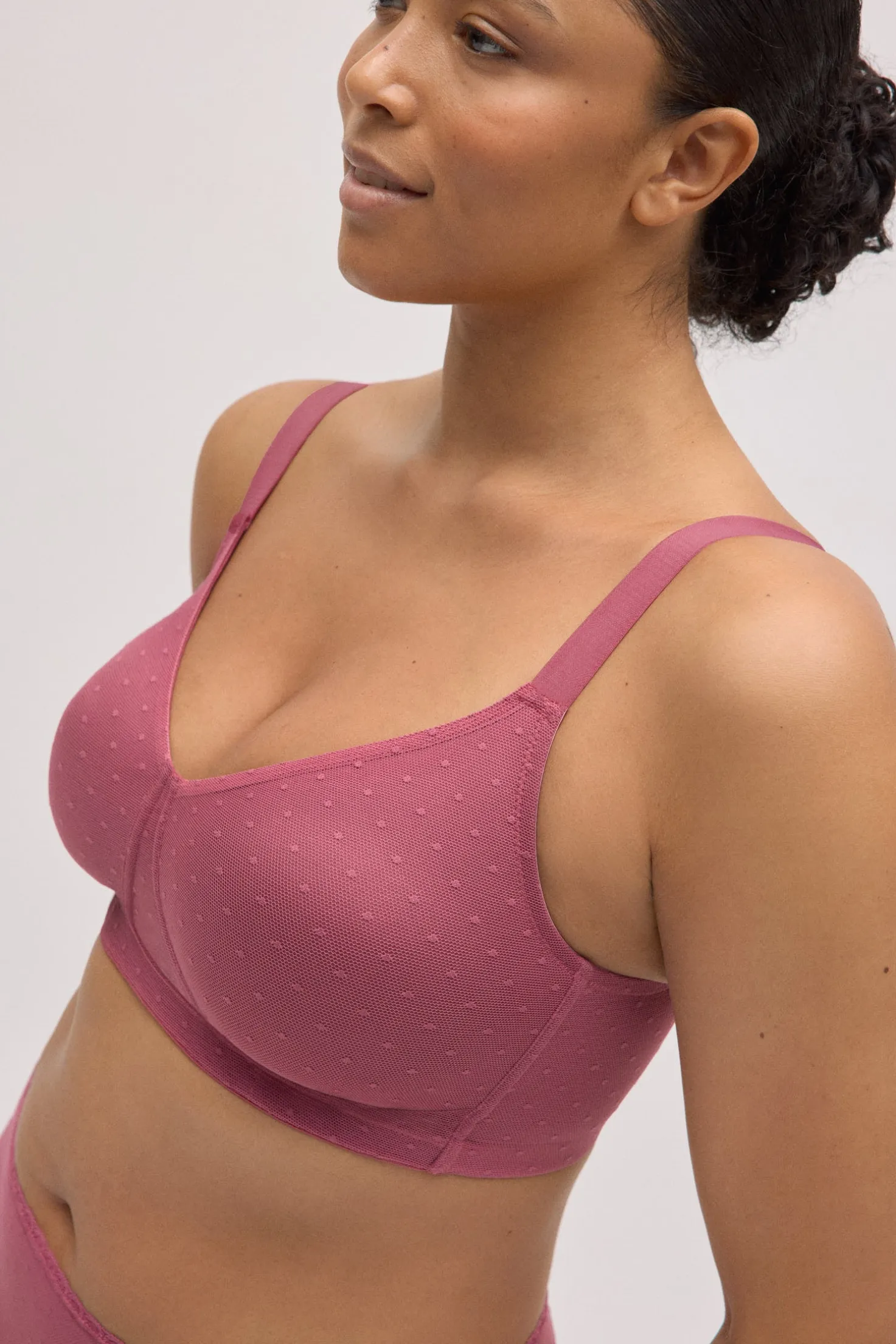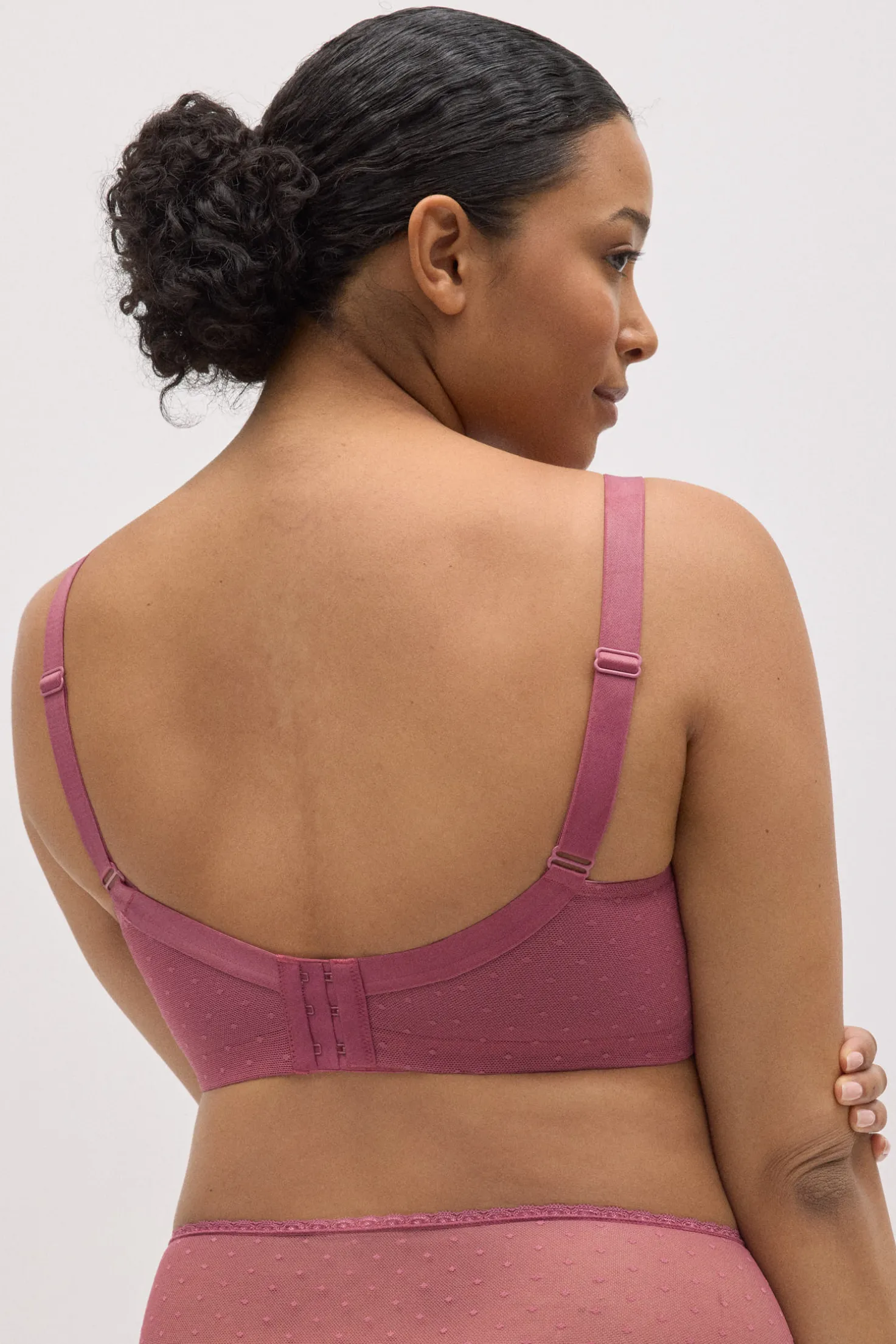 Sujetador reductor de plumeti rosa sin aros y sin relleno