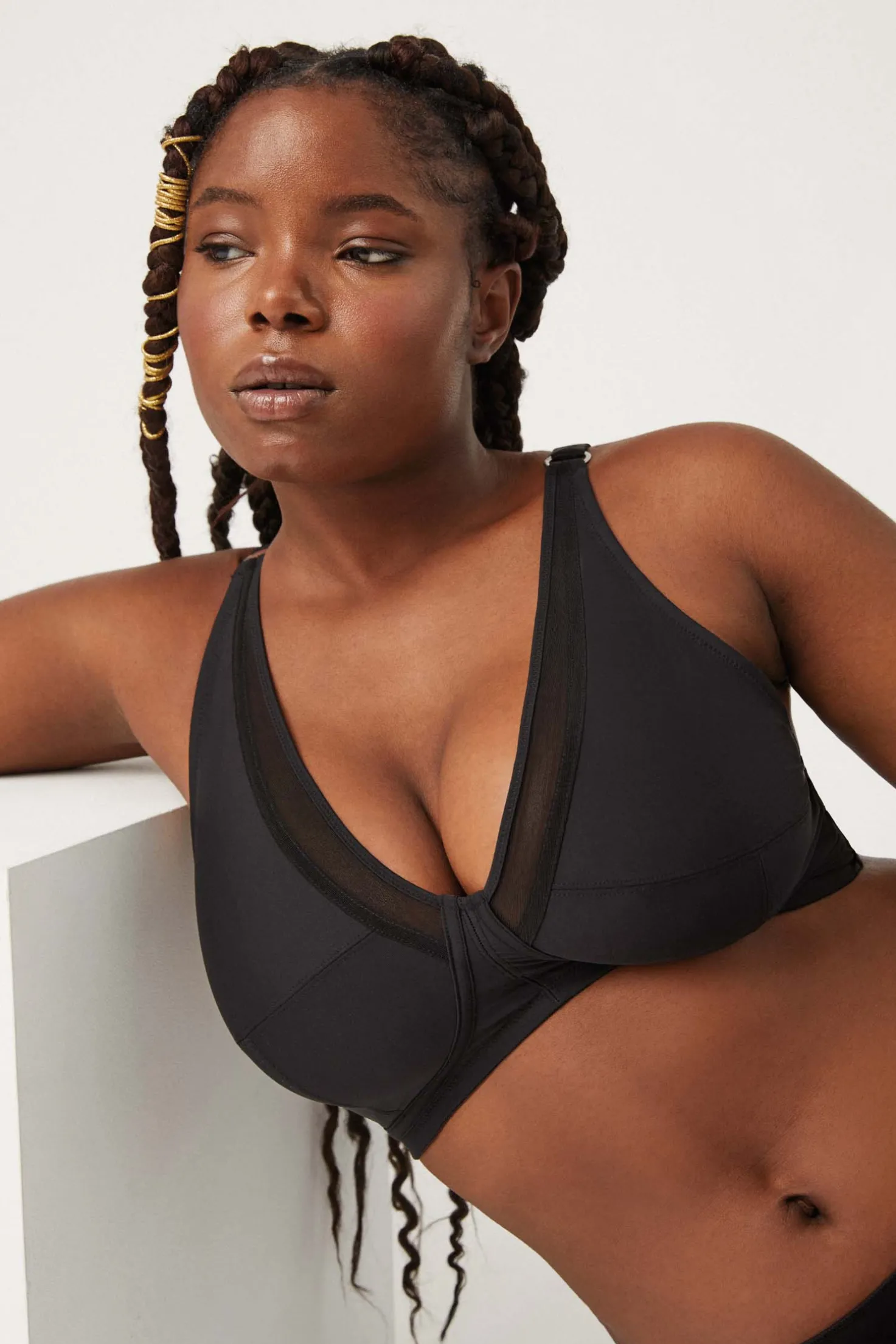 Conjunto sujetador con aro con relleno copa C y braga midi negro