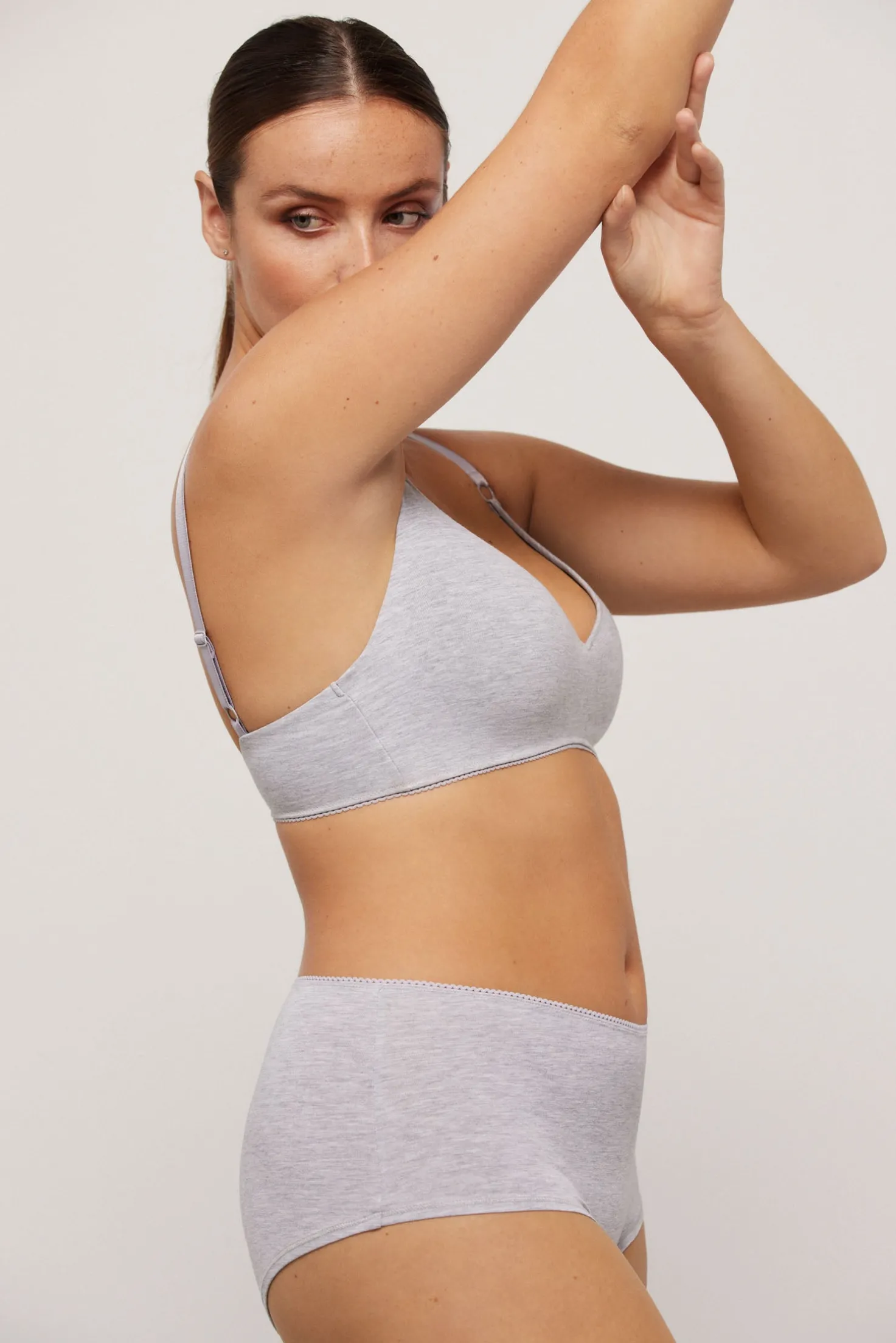 El sujetador sin aro push-up de Lapuresa está compuesto por un 95% de algodón orgánico y un 5% de elastano. Esta combinación de materiales asegura una prenda suave al tacto, transpirable y flexible, que se adapta a tus movimientos sin restricciones. Reconecta con tu libertad.