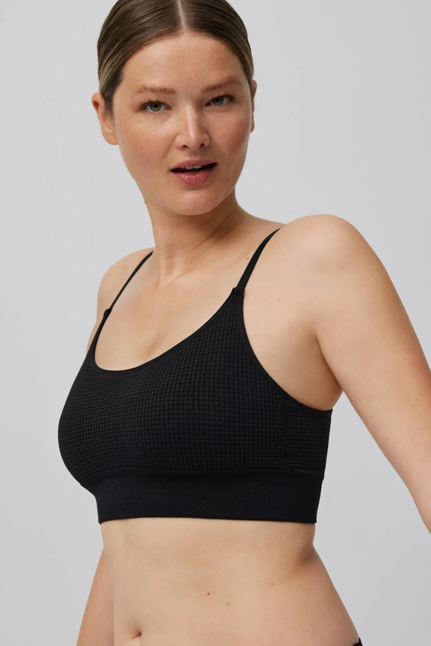 Hablando de comodidad, nuestro sujetador sin aros ni costuras está fabricado con un 93% de poliamida y un 7% de elastano. Descubre cómo un sujetador es capaz de adaptarse a la perfección a tu cuerpo, sin renunciar a la total libertad de movimiento.