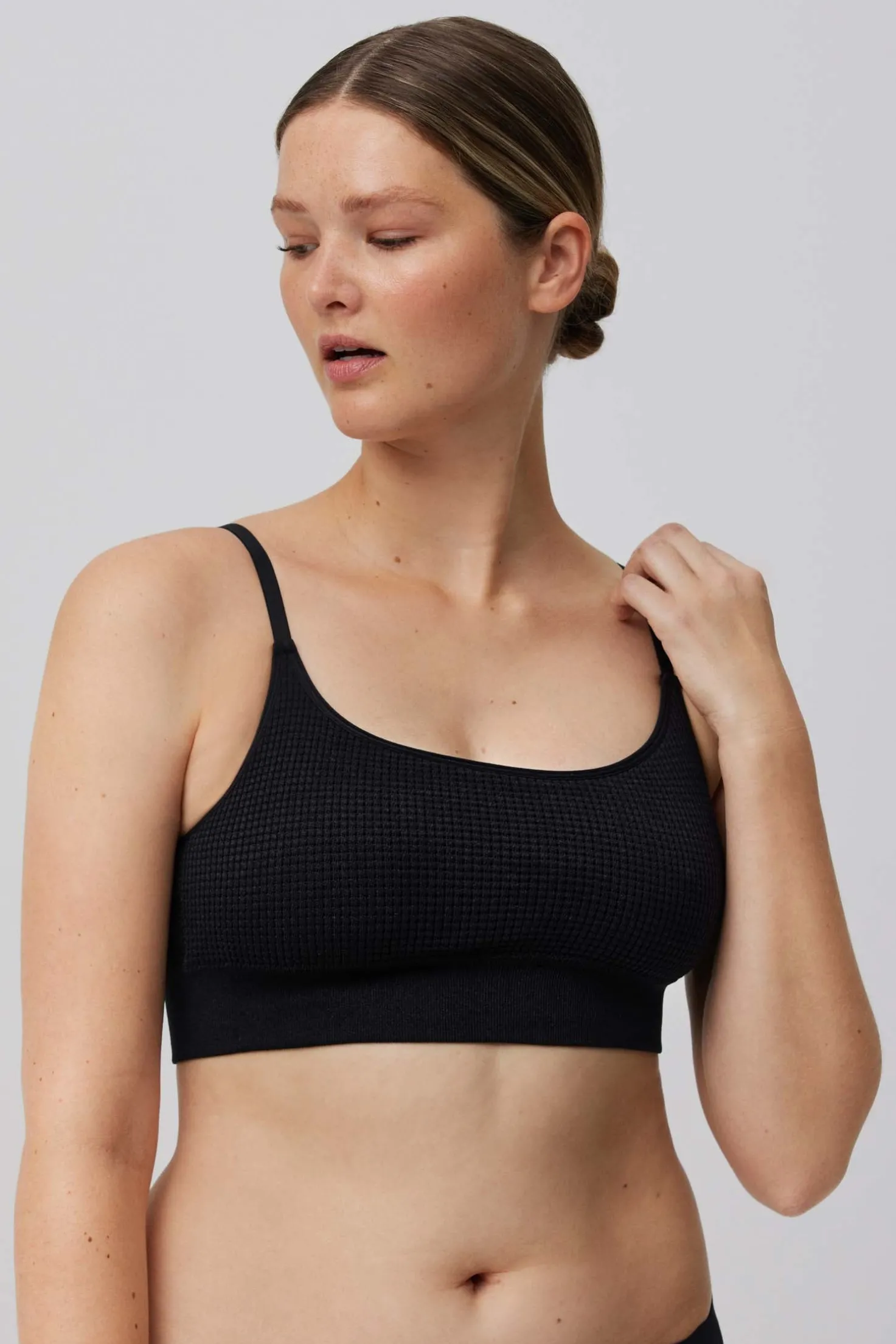 Nuestro sujetador tipo top sin aros ni costuras es la comodidad en su máximo esplendor. Olvídate de las rozaduras y las molestias, este modelo está diseñado para abrazar tu cuerpo sin costuras visibles. Y, ¿lo mejor de todo? No sacrificarás tu estilo por la comodidad. Su tejido y sus acabados invisibles hacen que sea una elección elegante para cualquier ocasión. Además, su diseño sin relleno realza tu figura de manera muy sutil.