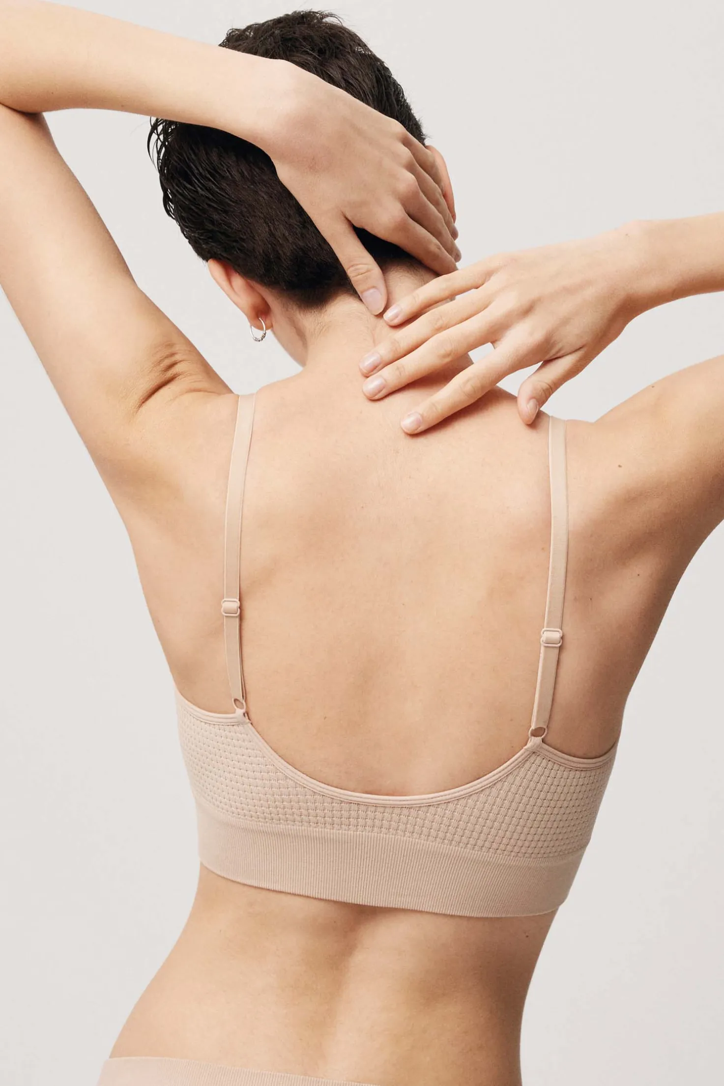 Sujetador tipo top sin aros ni costuras. Color nude. Características