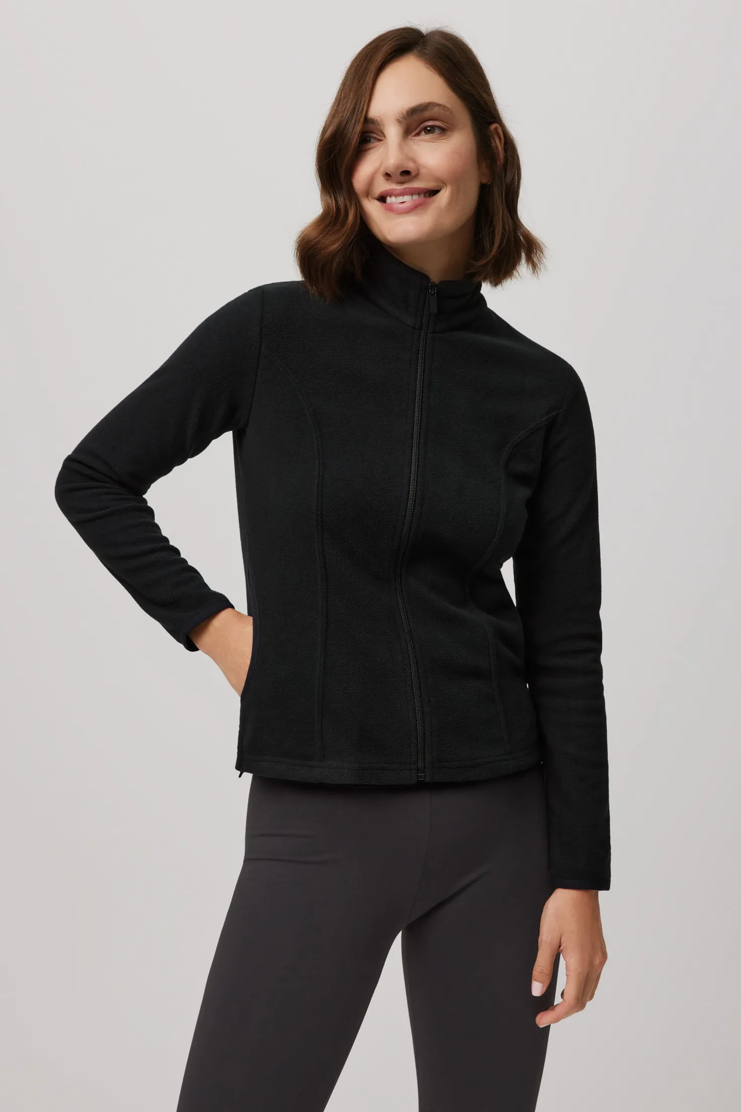 Cuello alto y cremallera completa para regular la temperatura con facilidad.