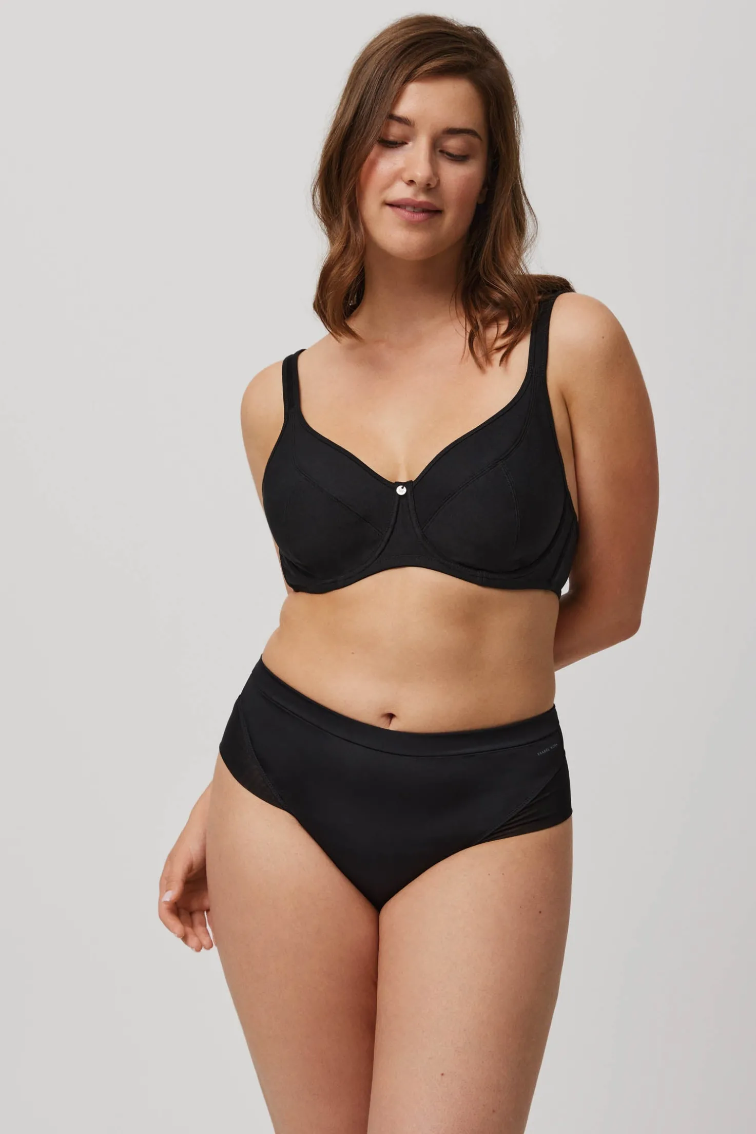 Nuestro tanga de cintura alta está compuesto de un tejido de microfibra, logrando un efecto ultra suave al tacto, que da sensación de segunda piel cuando lo llevas puesto. Esta vez hemos incorporado detalles en tul para dar un toque más glamuroso, a la vez que la cintura alta proporciona una fijación idónea para realzar las curvas con estilo.