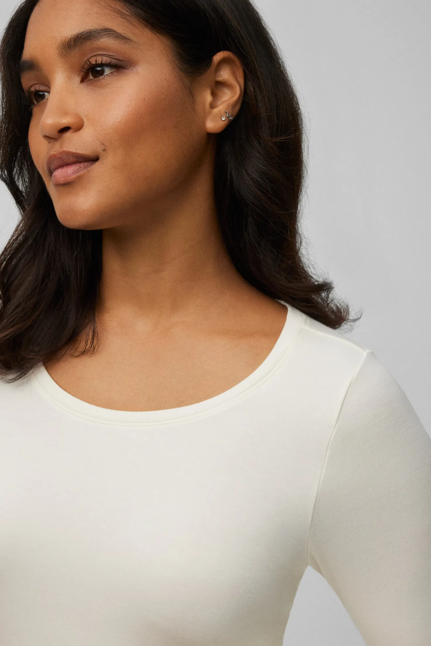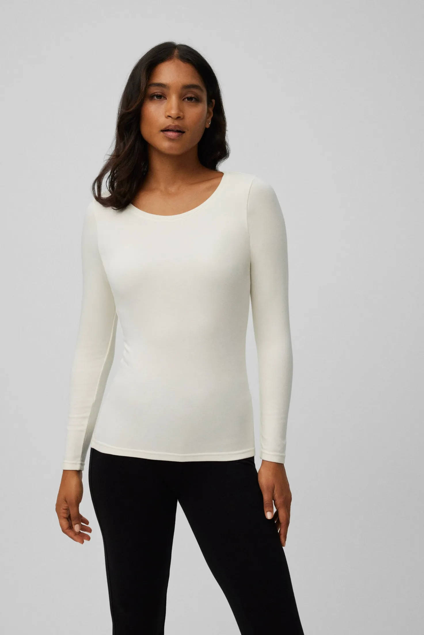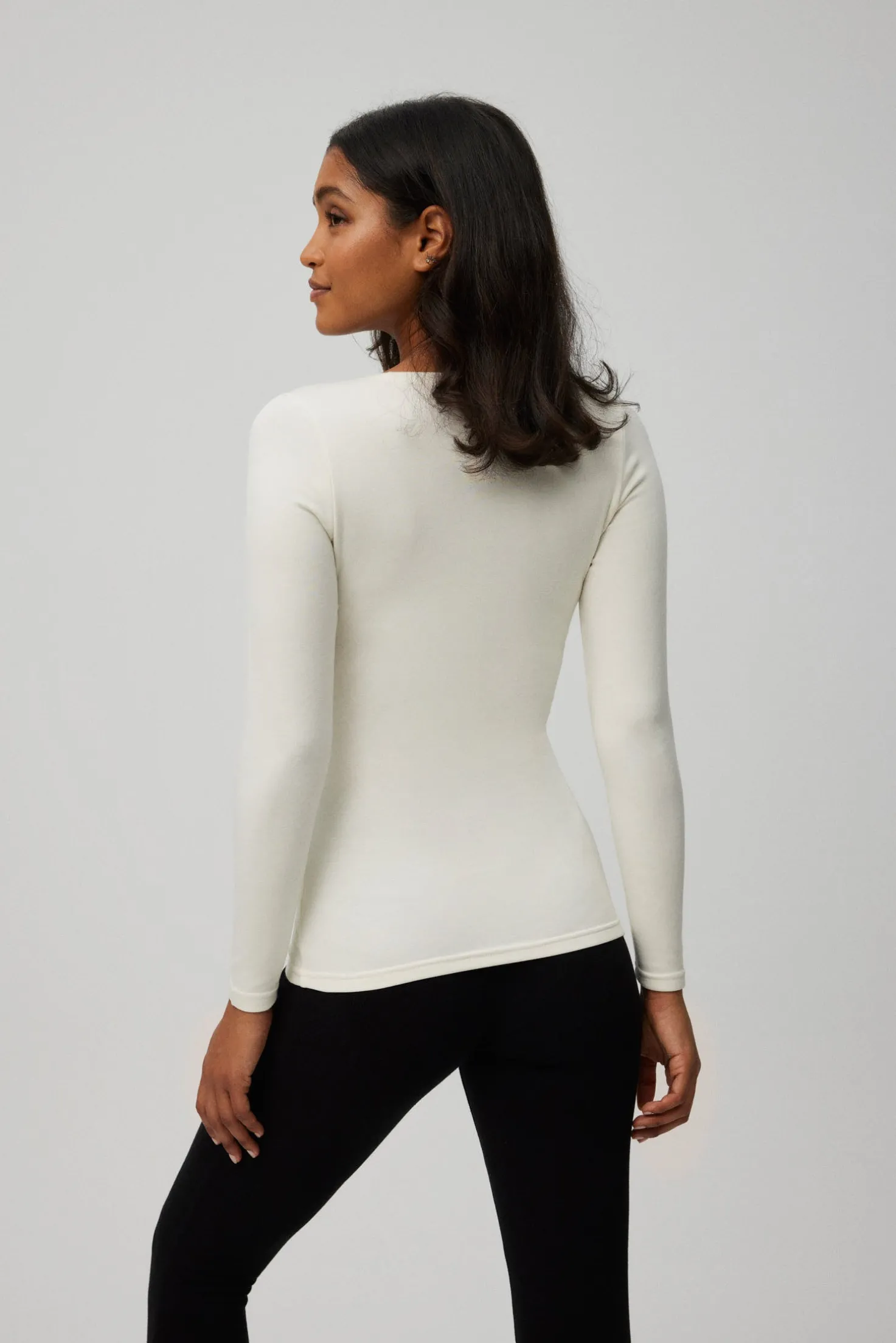 - Diseño de cuello redondo y manga larga para mayor cobertura y confort.