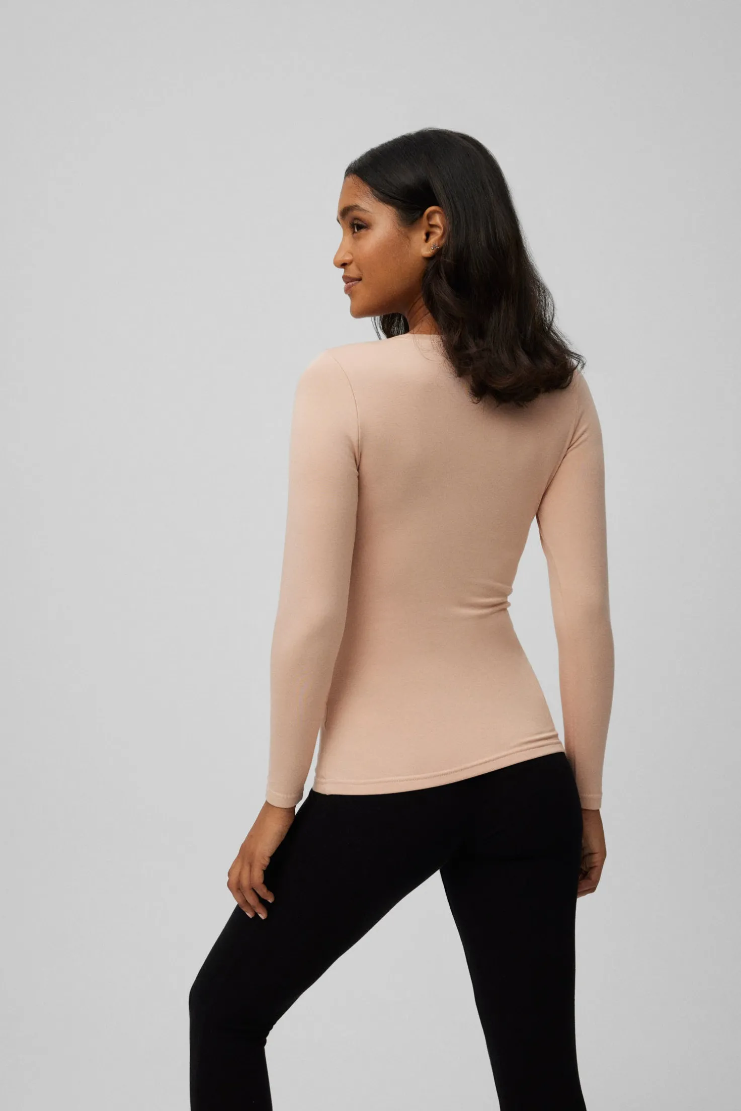 - Diseño de cuello redondo y manga larga para mayor cobertura y confort.