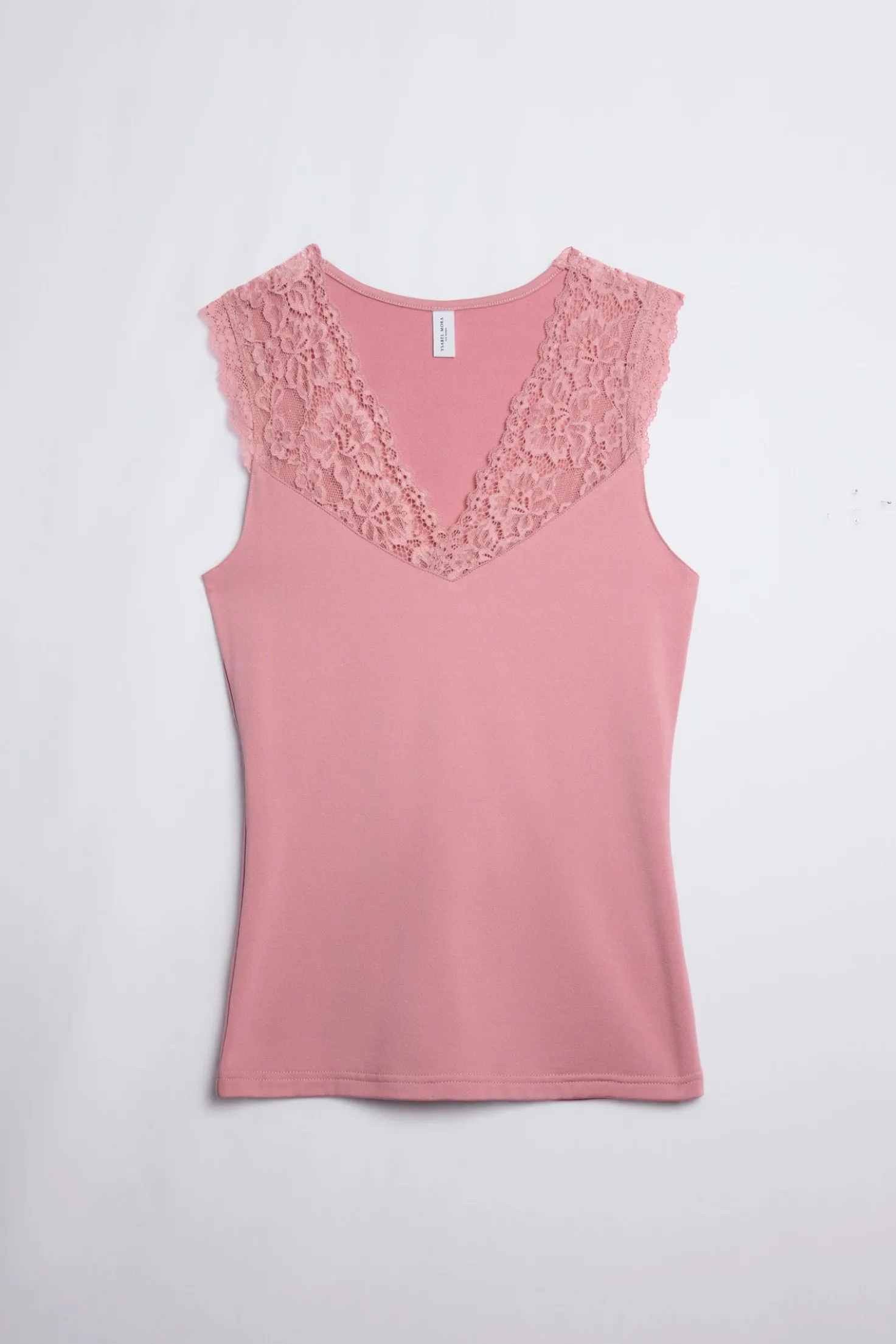 Camiseta térmica tirantes con cuello pico y detalles de encaje