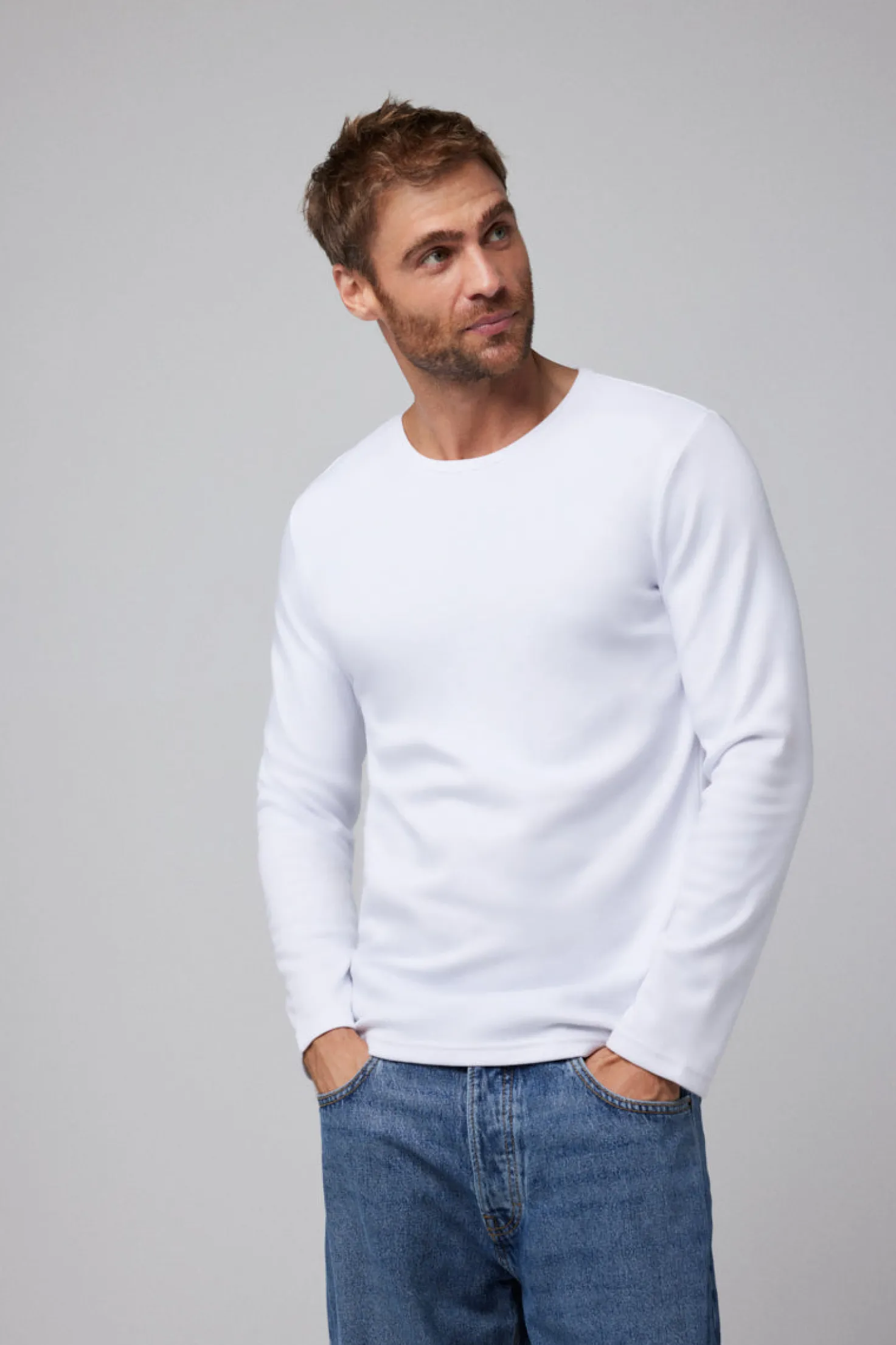 - Manga larga y cuello redondo que se adaptan a cualquier estilo.