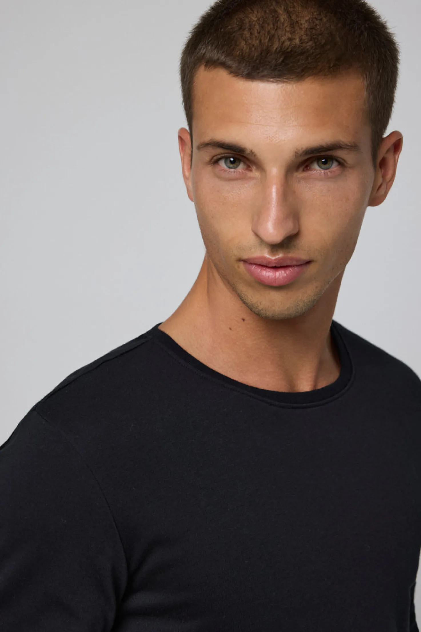 - Manga larga y cuello redondo que se adaptan a cualquier estilo.