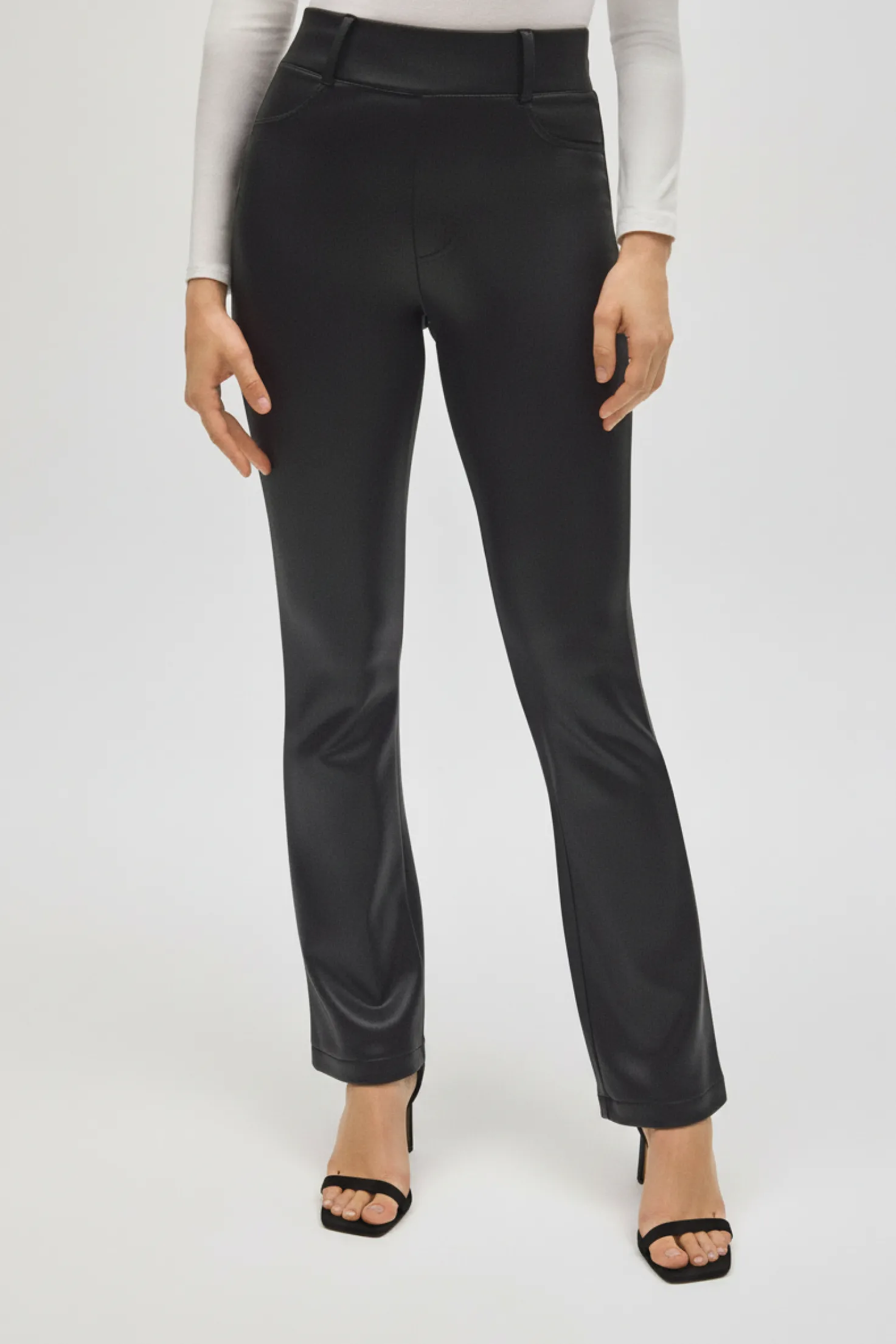 Pantalón térmico flare de cintura alta con efecto piel y acabado mate. Una prenda funcional y con estilo, ideal para mantener el calor sin renunciar a un look sofisticado durante el invierno.
