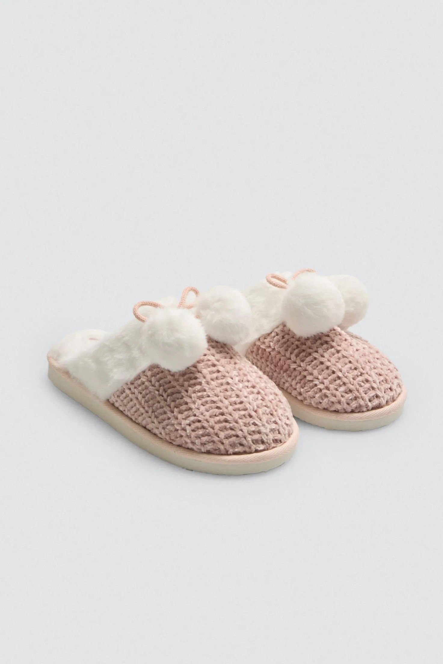 Zapatillas de casa con doble pompón y exterior aterciopelado