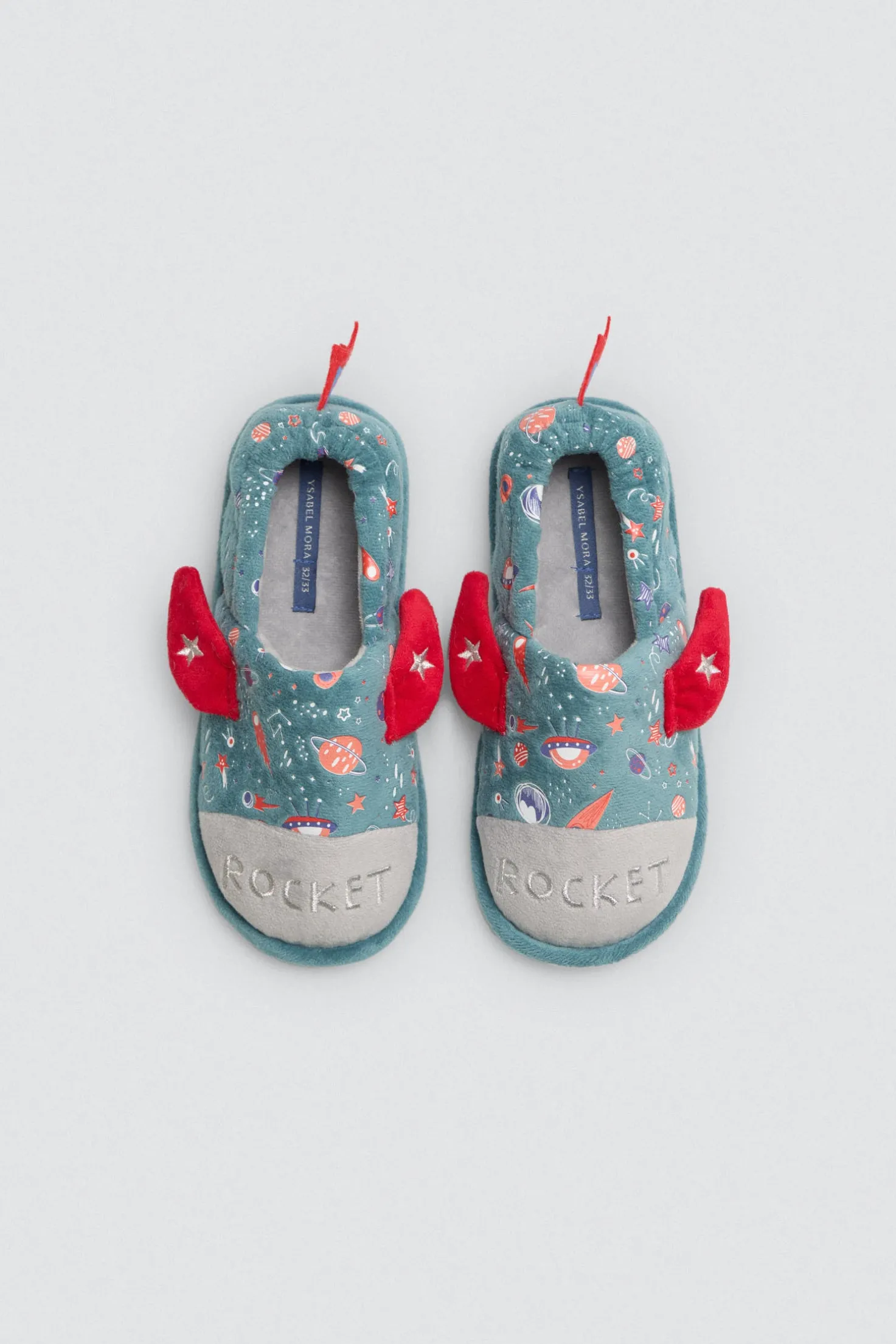 Zapatillas de casa infantiles cohete con detalles espaciales