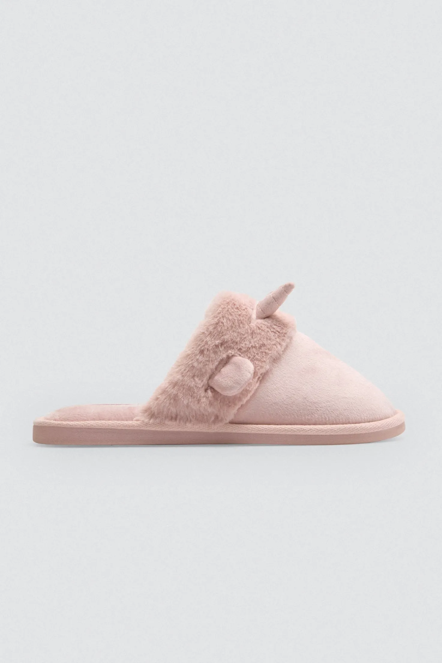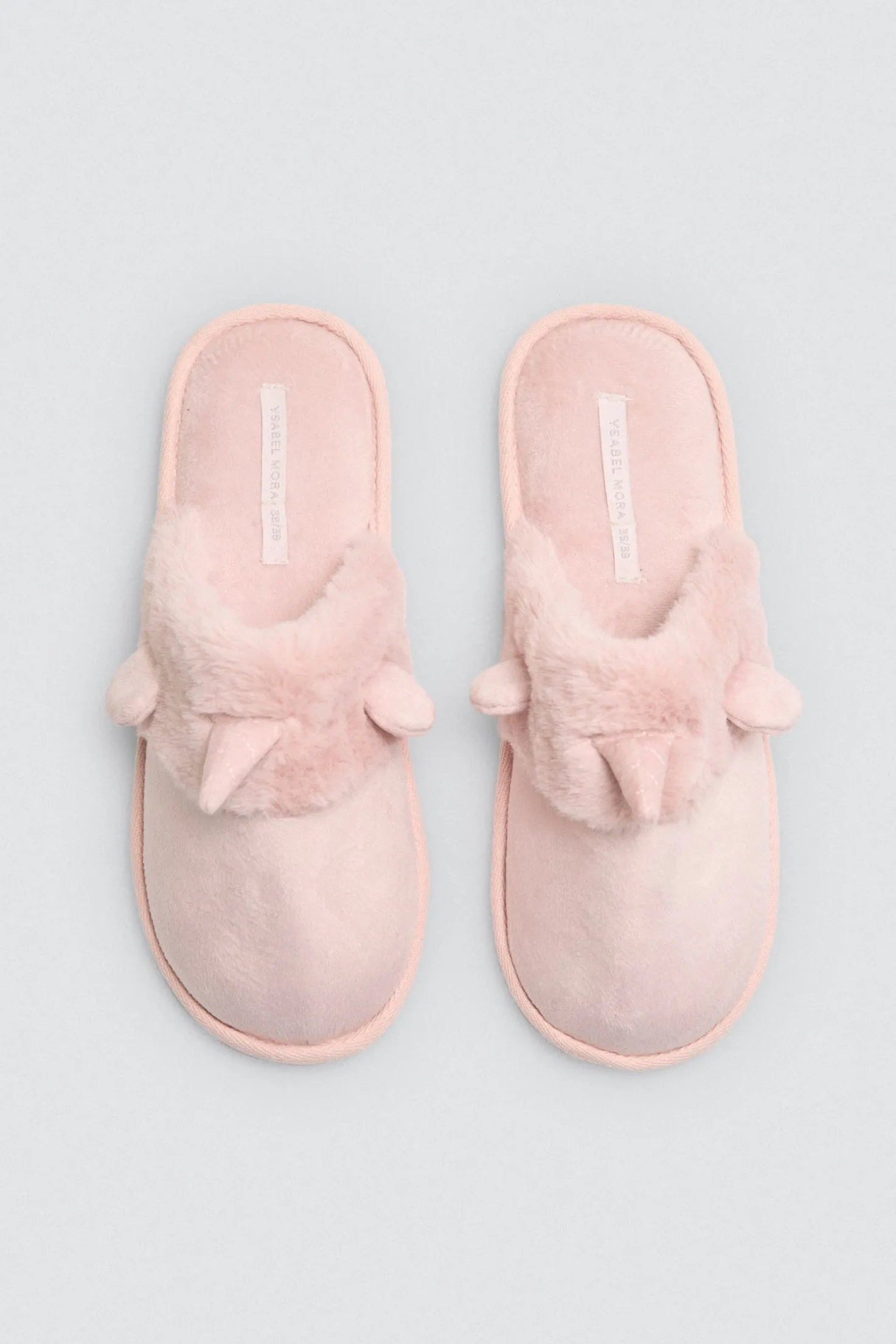 Zapatillas de casa con detalles de orejas 3D y pelo